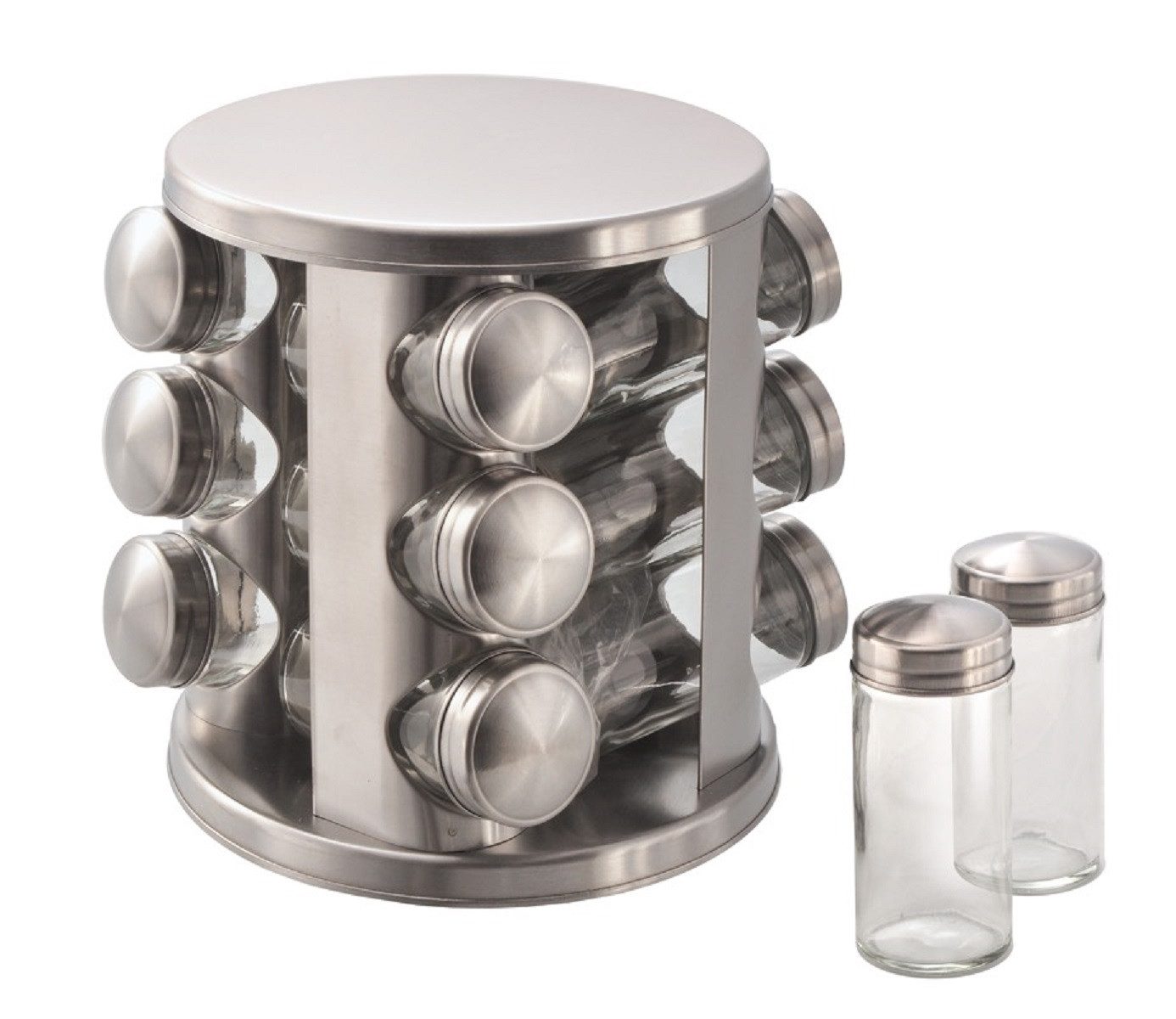 Der Ständer ist mit insgesamt 12 Glasbehältern ausgestattet, die jeweils luftdicht verschlossen sind, um die Frische und das Aroma Ihrer Gewürze zu bewahren. Diese Glasbehälter sind nicht nur praktisch, sondern auch formschön gestaltet, um die verschiedenen Gewürze übersichtlich darzustellen.