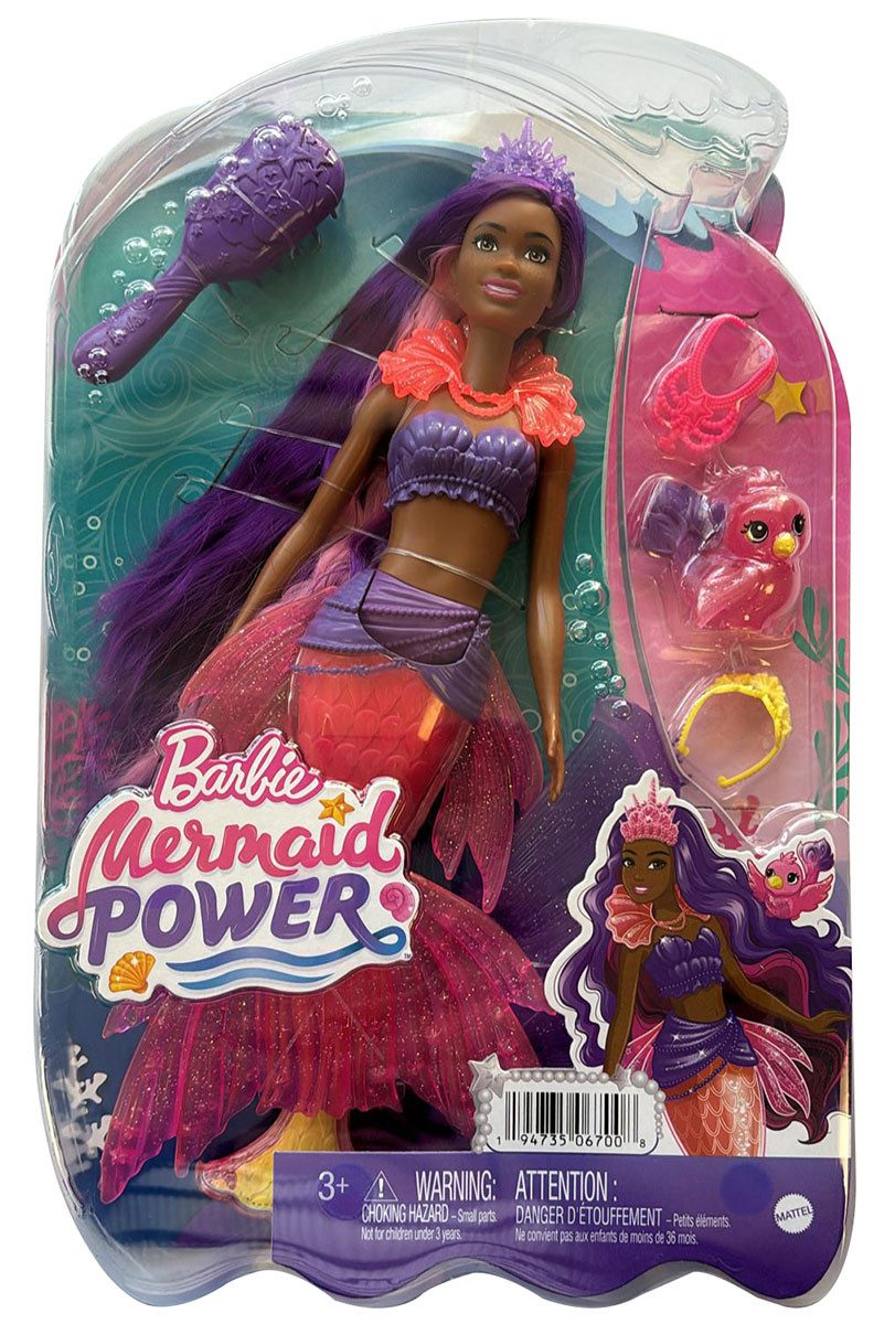 | Ausstattung | Meerjungfrau mit austauschbaren Schwanzflossen, 2 Diademen, 2 Halsketten und eine Haarbürste |