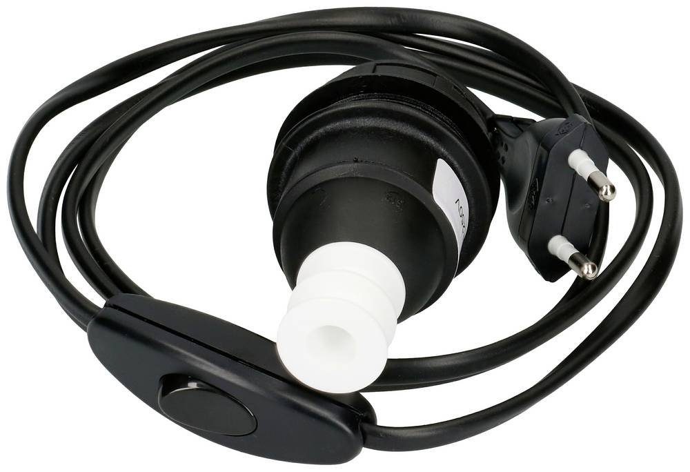 Mit der Flaschengarnitur haben Sie die Möglichkeit, eine E27 Leuchte an einer passenden Flasche anzubringen. Drücken Sie den Zapfen einfach in einen Flaschenhals mit einem Innendurchmesser von 18 - 22 mm. Mit dem Schnurschalter können Sie die Leuchte ein- und ausschalten