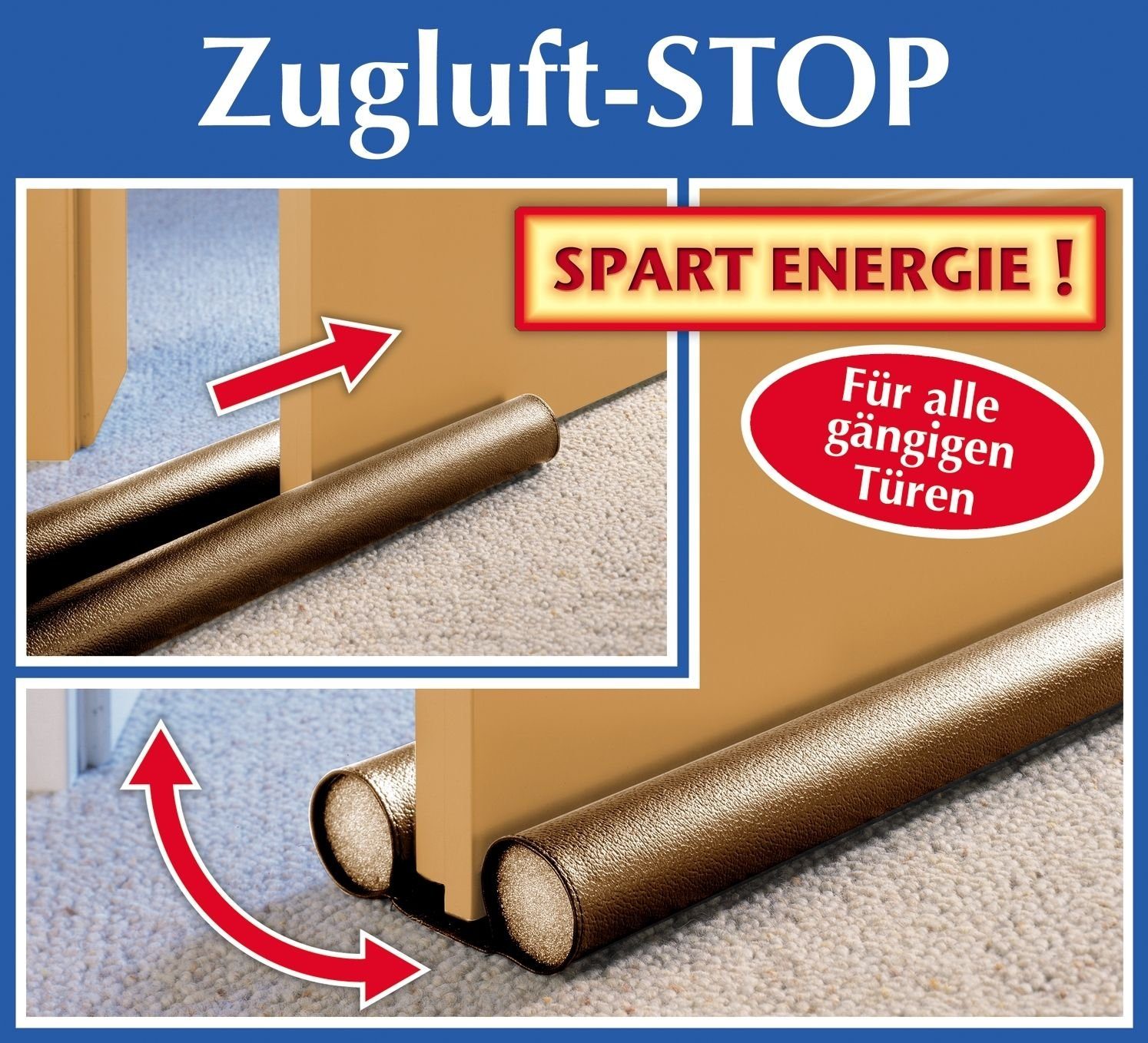 Die doppelseitige Türstoppuhr besteht aus Kunststoff mit Schwammfüllung. Die Installation ist sehr einfach schieben Sie es einfach unter den Türflügel. 40 cm lang und 10 cm breit ermöglichen die Stoppuhr, sowohl Türen als auch Luftströme effektiv zu blockieren, sodass Sie eine konstante Temperatur im Raum aufrechterhalten können.