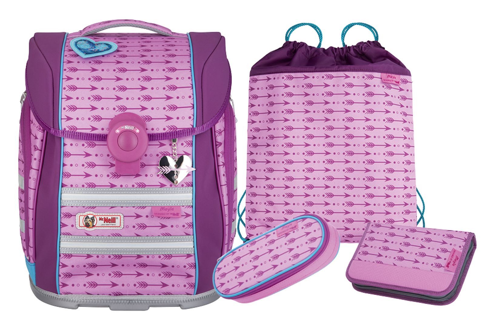 Mit diesem Schulranzen von McNeill ist Ihr Kind für alle Situationen bestens vorbereitet. Im geräumigen Hauptfach bringen Sie alle Hefte und Bücher geordnet unter. Zudem ist noch ausreichend Platz für Schlampermäppchen, Vesperdose und Trinkflasche. Neben dem Schulranzen erhalten Sie zwei Schlampermäppchen und einen Sportbeutel im passenden Design gleich dazu. Auf der Vorderseite befinden sich zwei Led-Streifen, welche mit einem Klick aktiviert sind. So sieht man Ihr Kind schon von Weitem. Die Rückseite des McNeill Ergo Primero Mc Light Set 4-teilig ist gepolstert und Kinderrücken gerecht geformt. Sie können sogar die Größe verändern, sodass Ihr Kind mitwachsen kann. Lassen Sie sich diesen tollen Begleiter nicht entgehen.