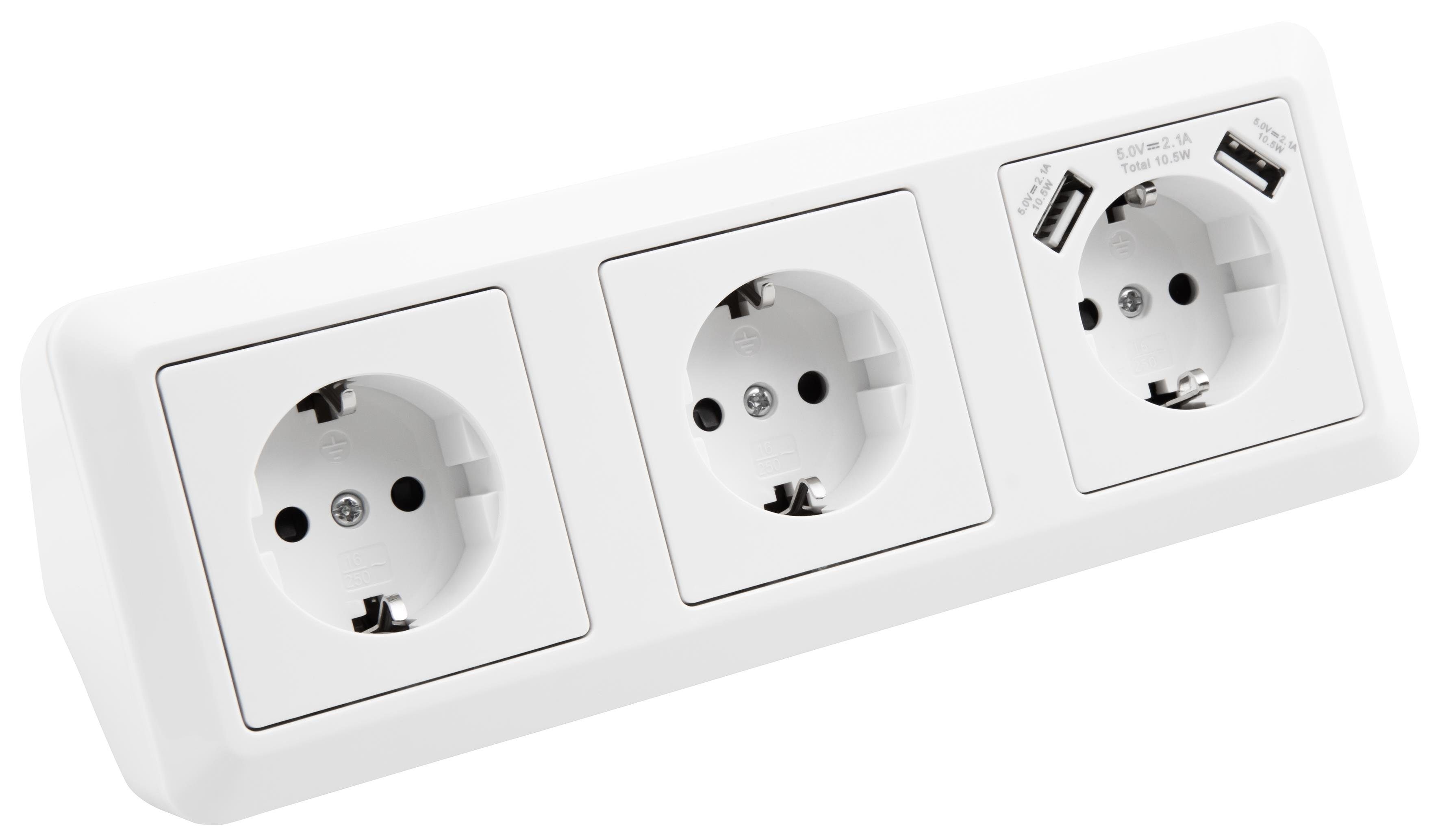 McPower MC POWER Cup Steckdosenblock Ecksteckdose Unterbausteckdose 230V/16A, Mehrfachsteckdose