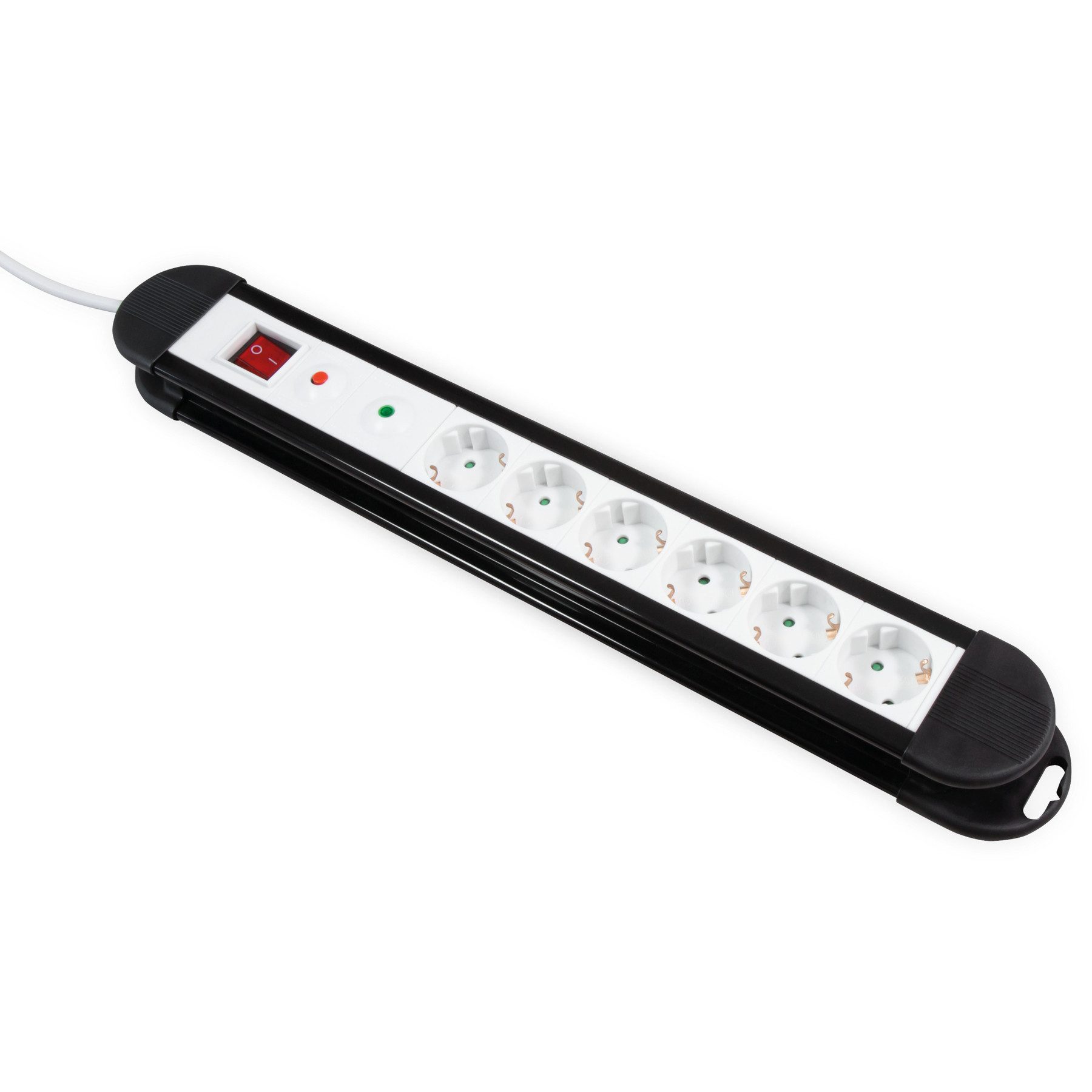 Hochwertige stabile Steckdosenleiste mit 6 Schutzkontakt-Steckdosen und beleuchteten AN/AUS Schalter.