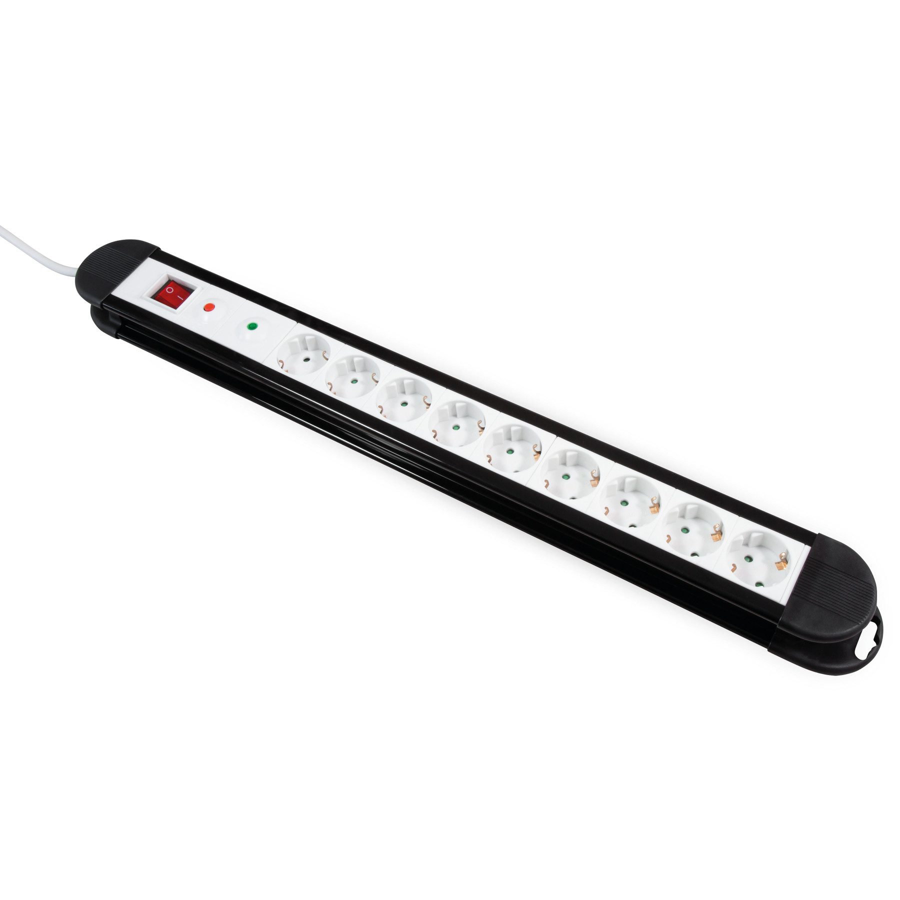 Hochwertige stabile Steckdosenleiste mit 9 Schutzkontakt-Steckdosen und beleuchteten AN/AUS Schalter.