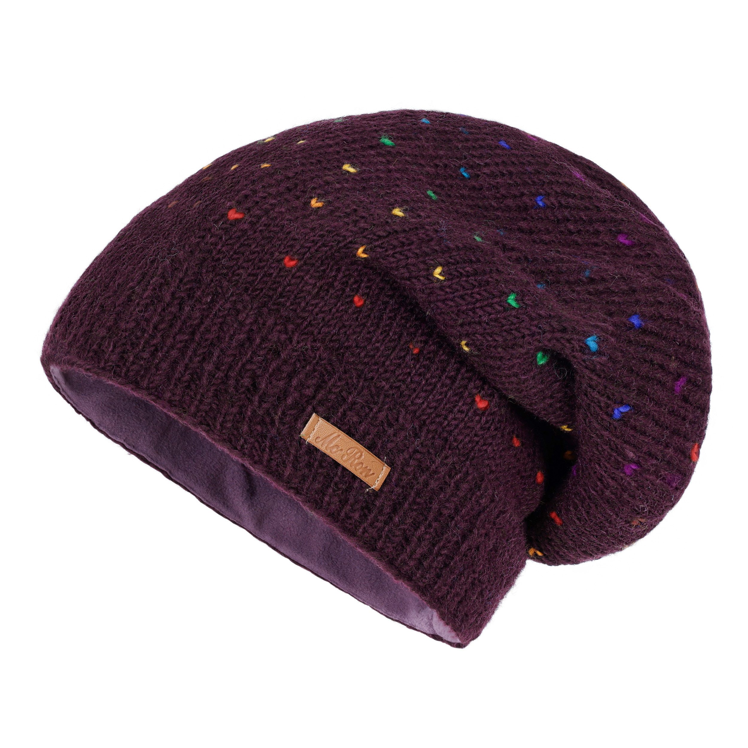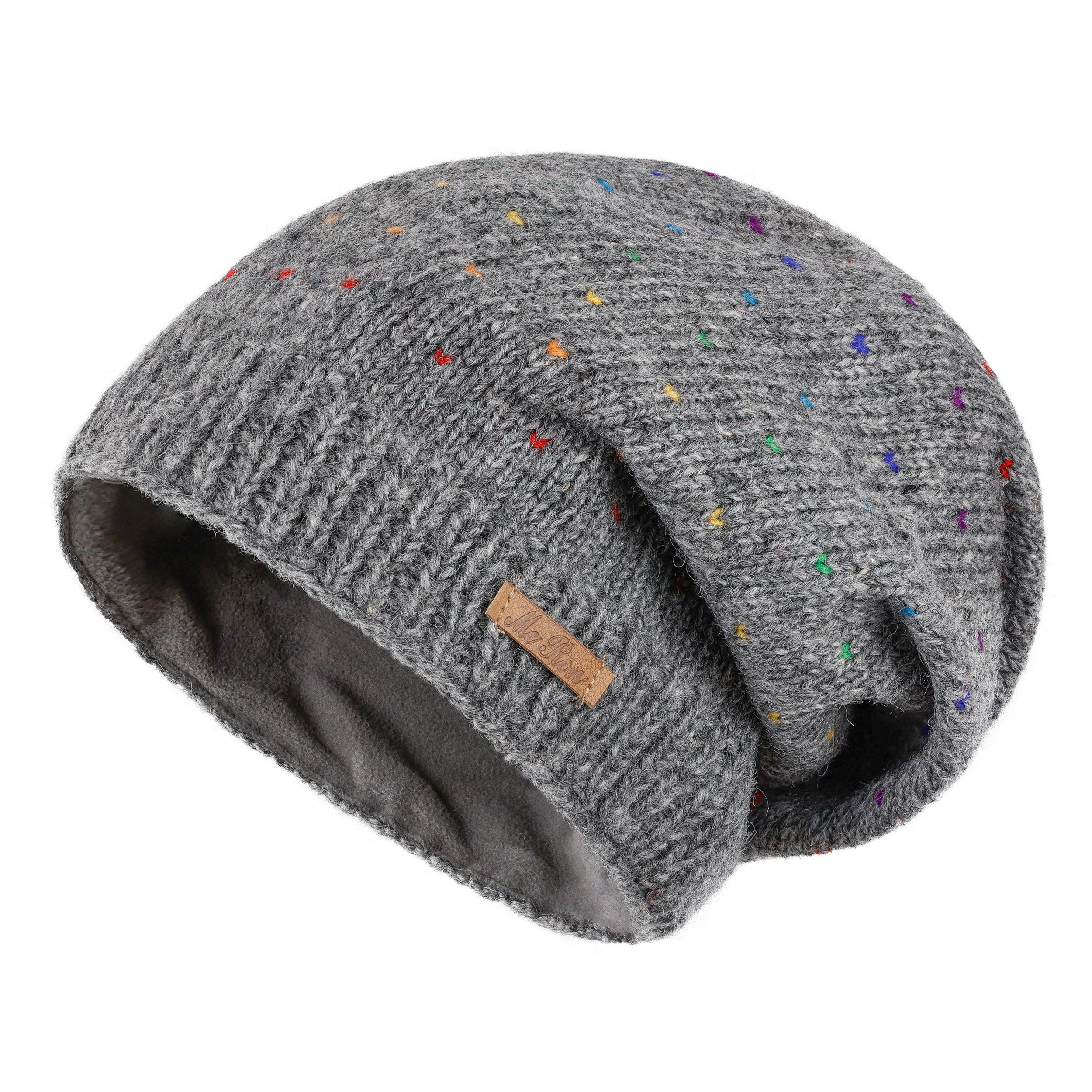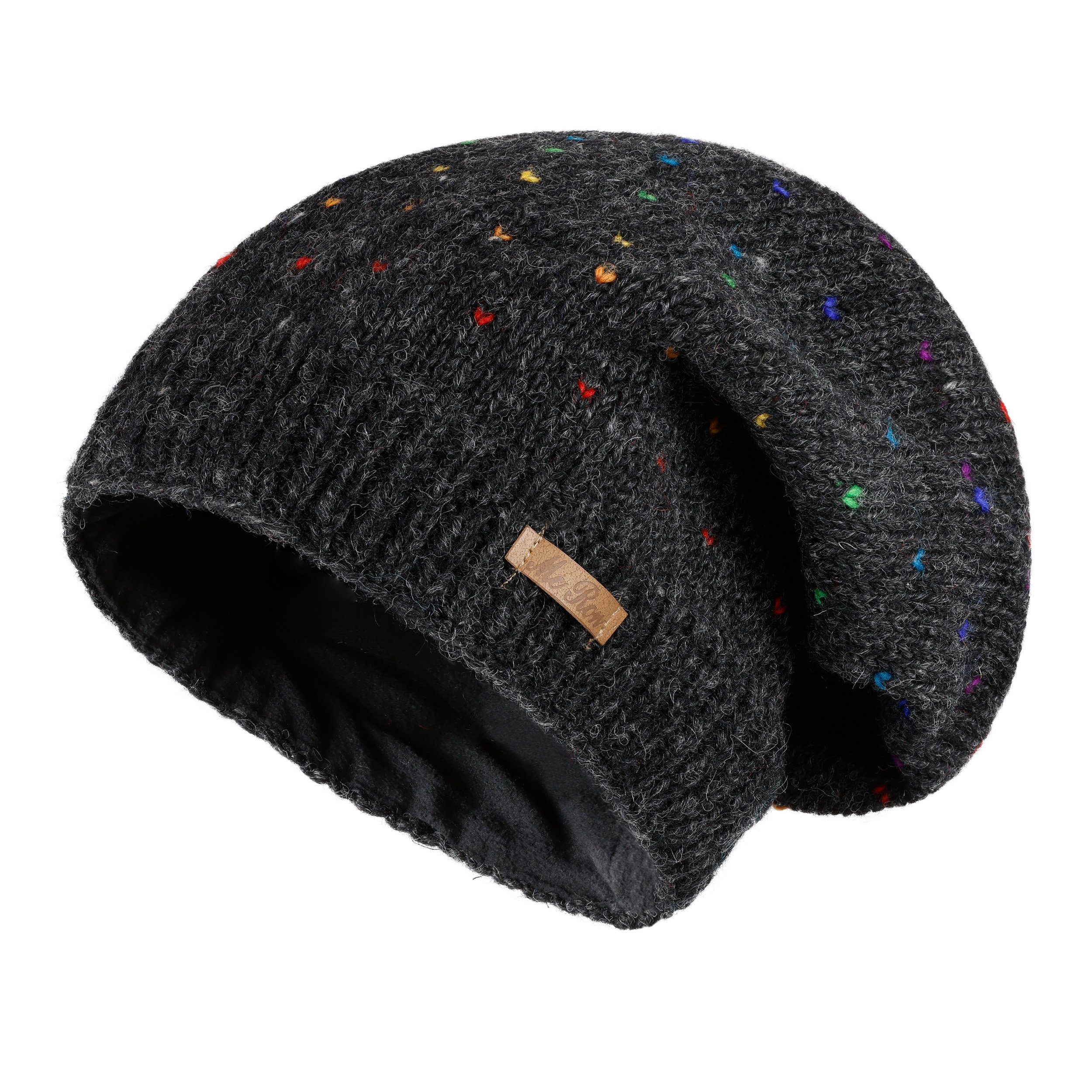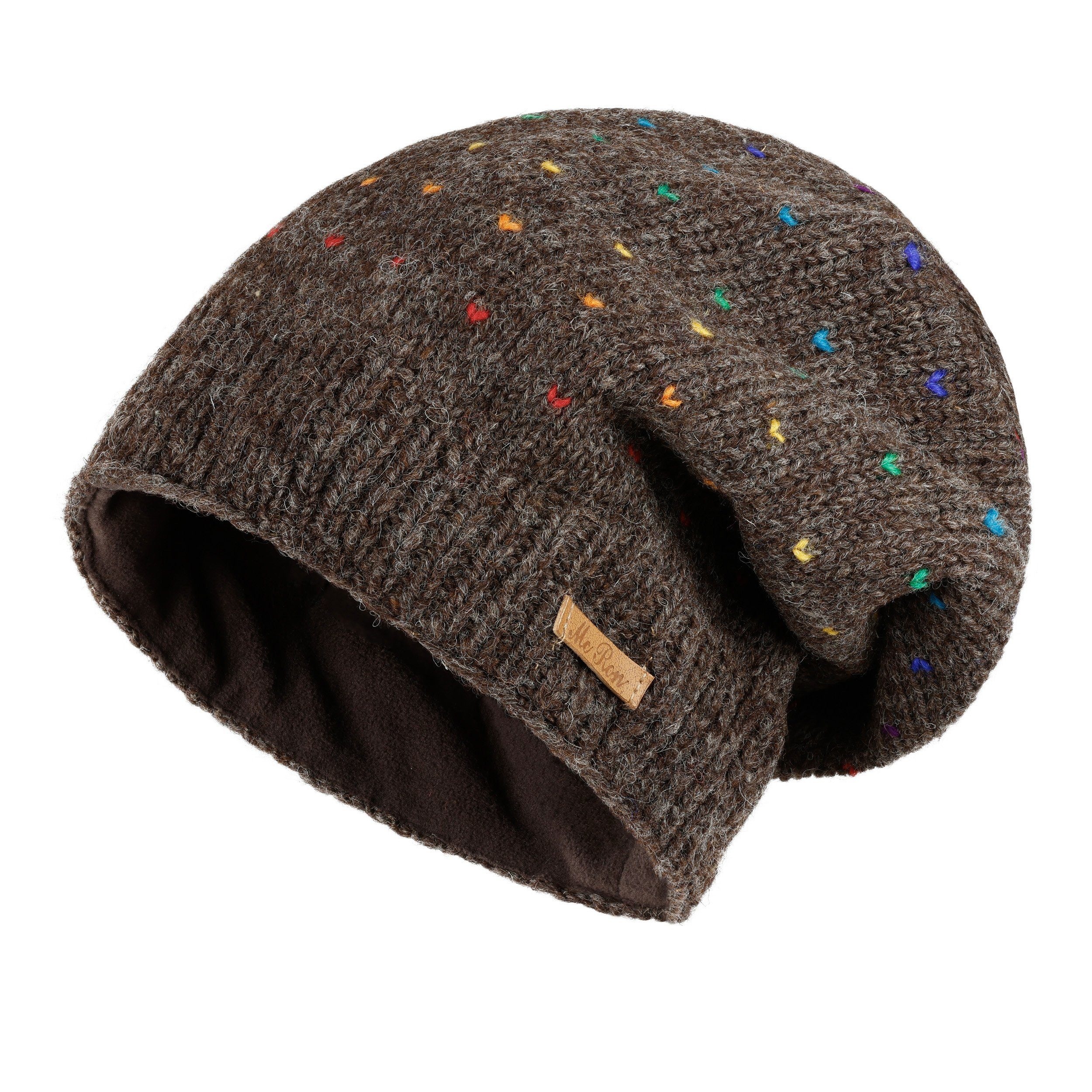 McRon Beanie Wollmütze Modell Lizzy Regenbogen gefüttert mit Fleece, hoher Schurwollanteil