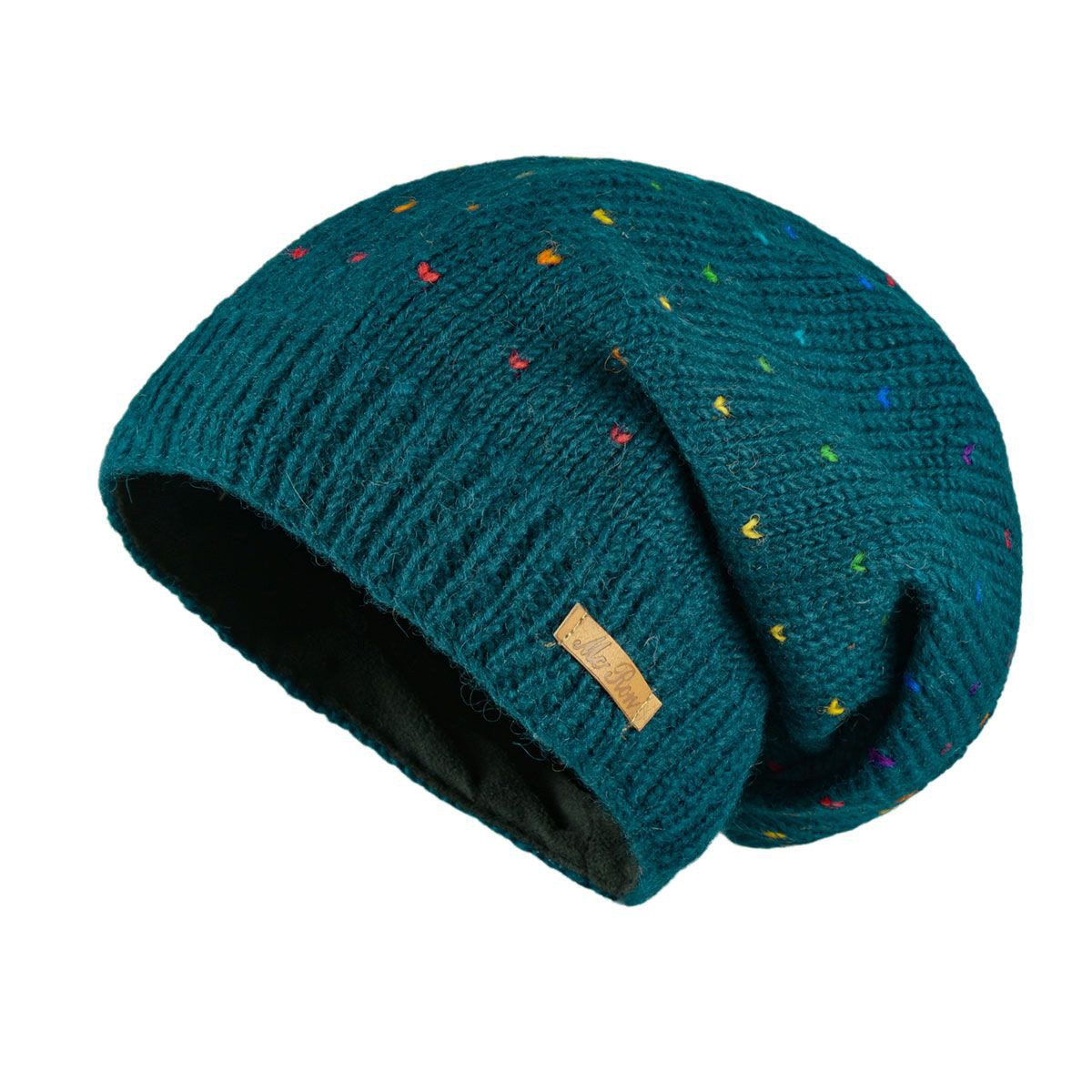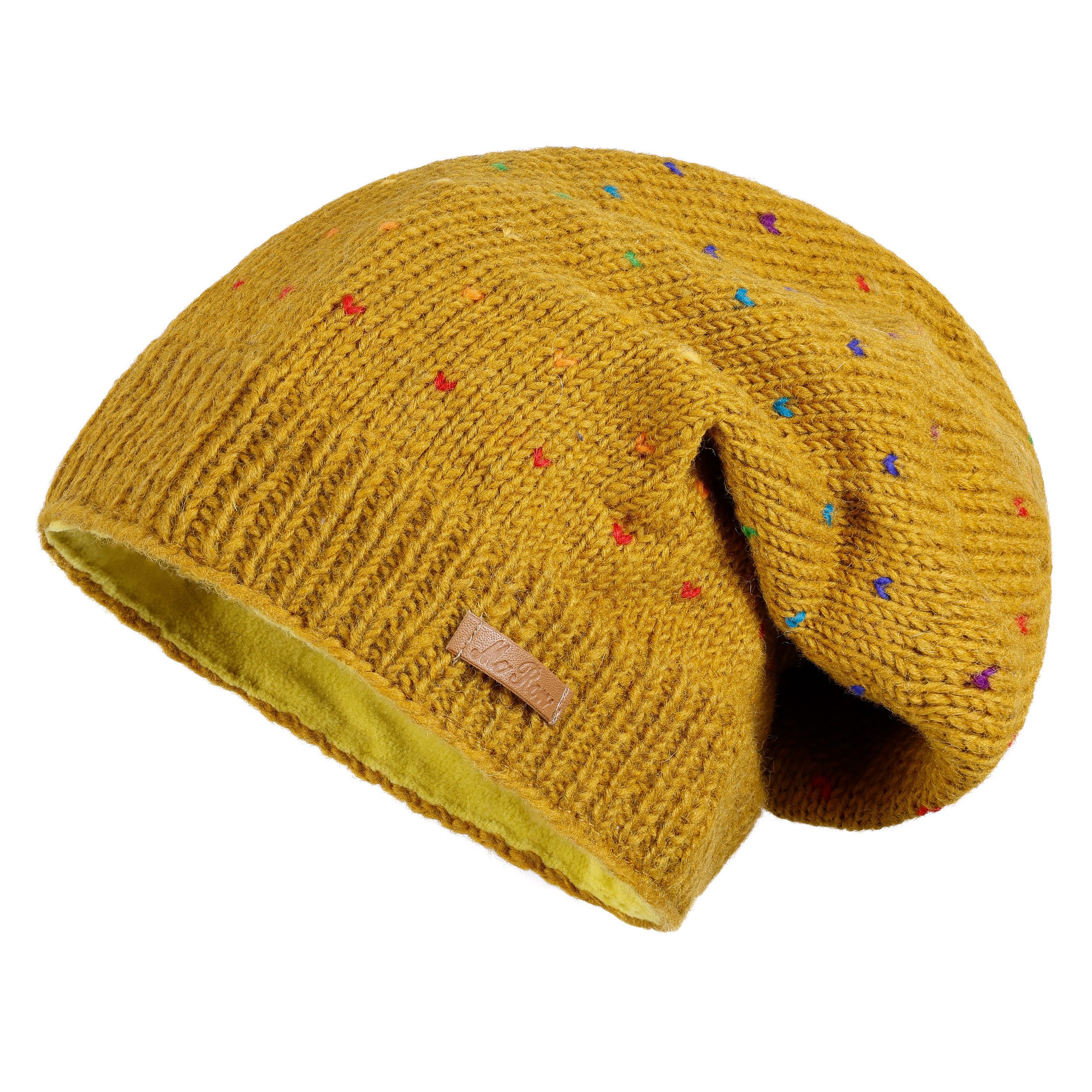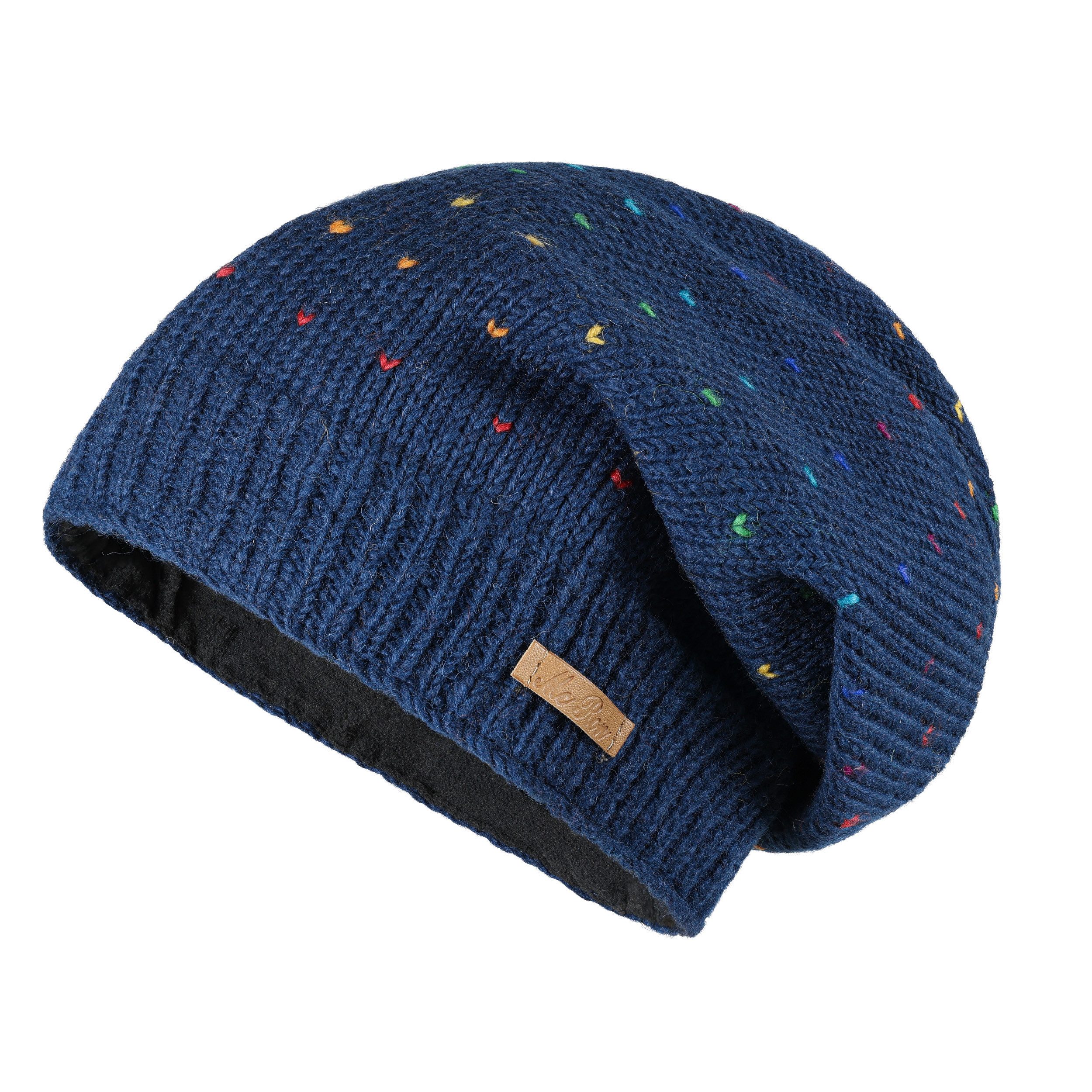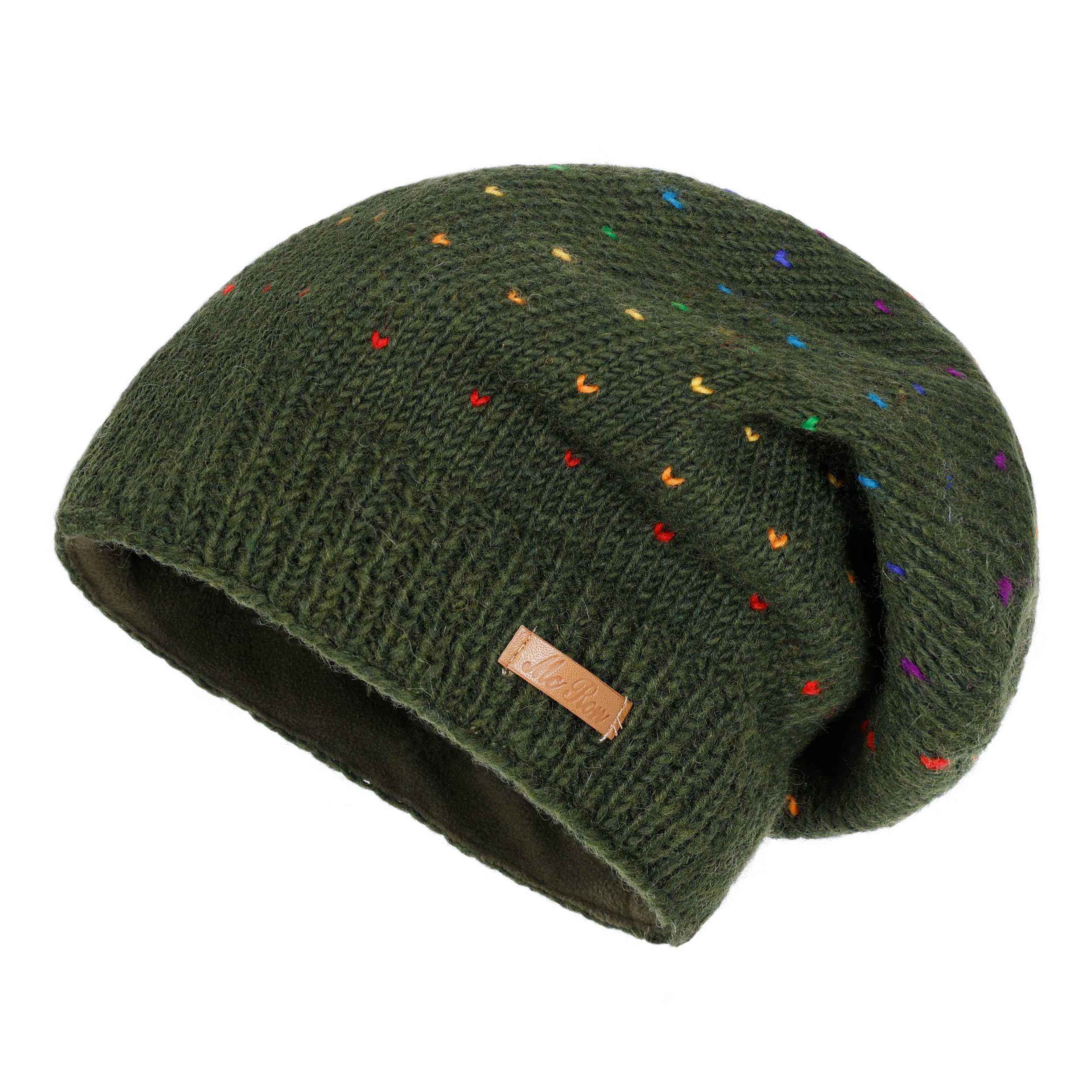 McRon Beanie Wollmütze Modell Lizzy Regenbogen gefüttert mit Fleece, hoher Schurwollanteil