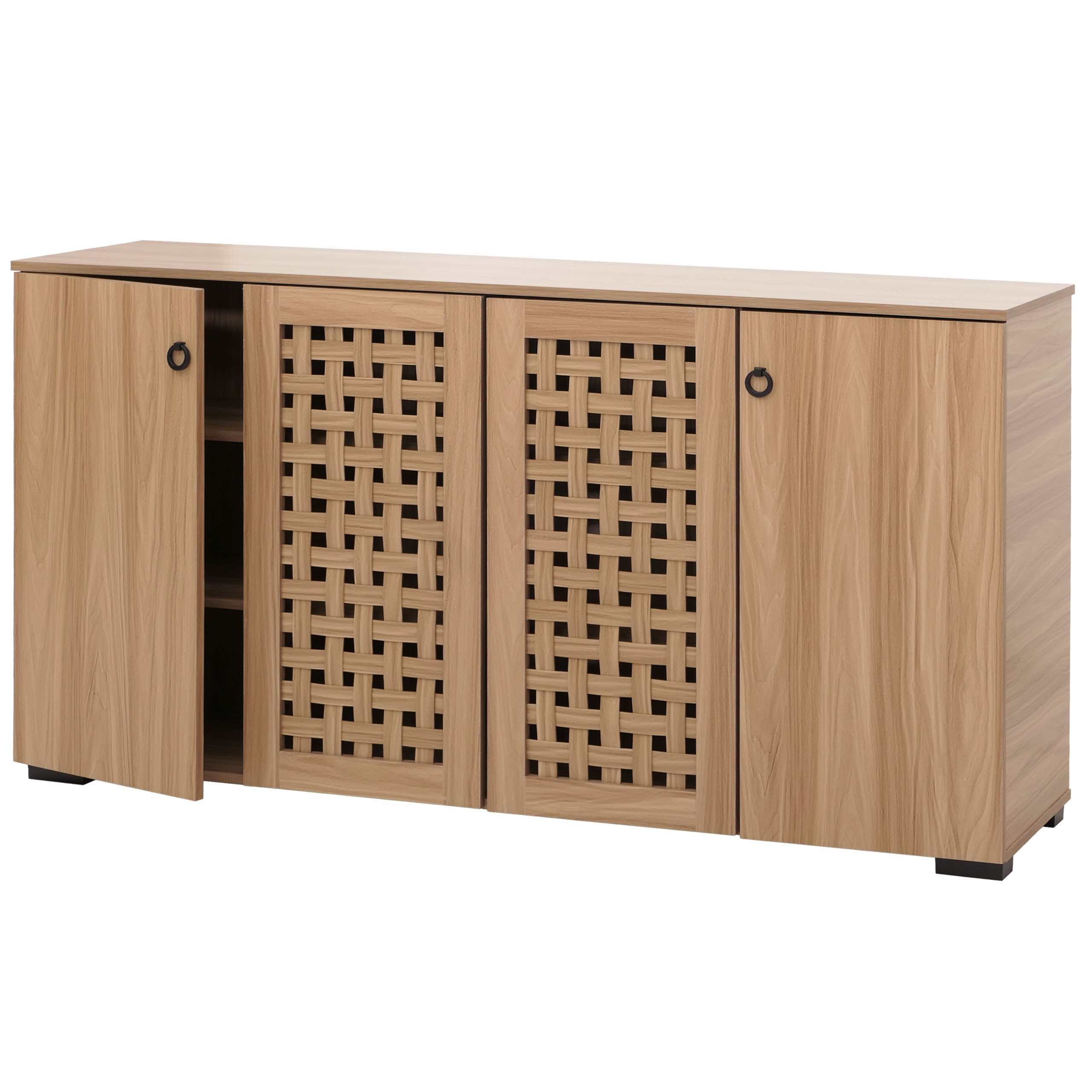 | Material | Korpus und Regalböden: Spanplatte (Gummibaumholz Stärke 15mm mit PU-Papierbeschichtung), Rückwand: MDF (Gummibaumholz Stärke 2,5mm), Füße: PVC |
