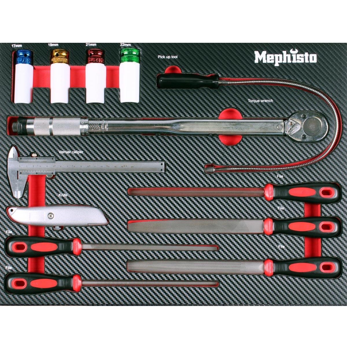 | Ausstattung | Feilenset, Messschieber, magnetischer Greifer, Teppichmesser (Cuttermesser) inkl. Klinge, gummierte Felgennuss Drehmomentschlüssel |