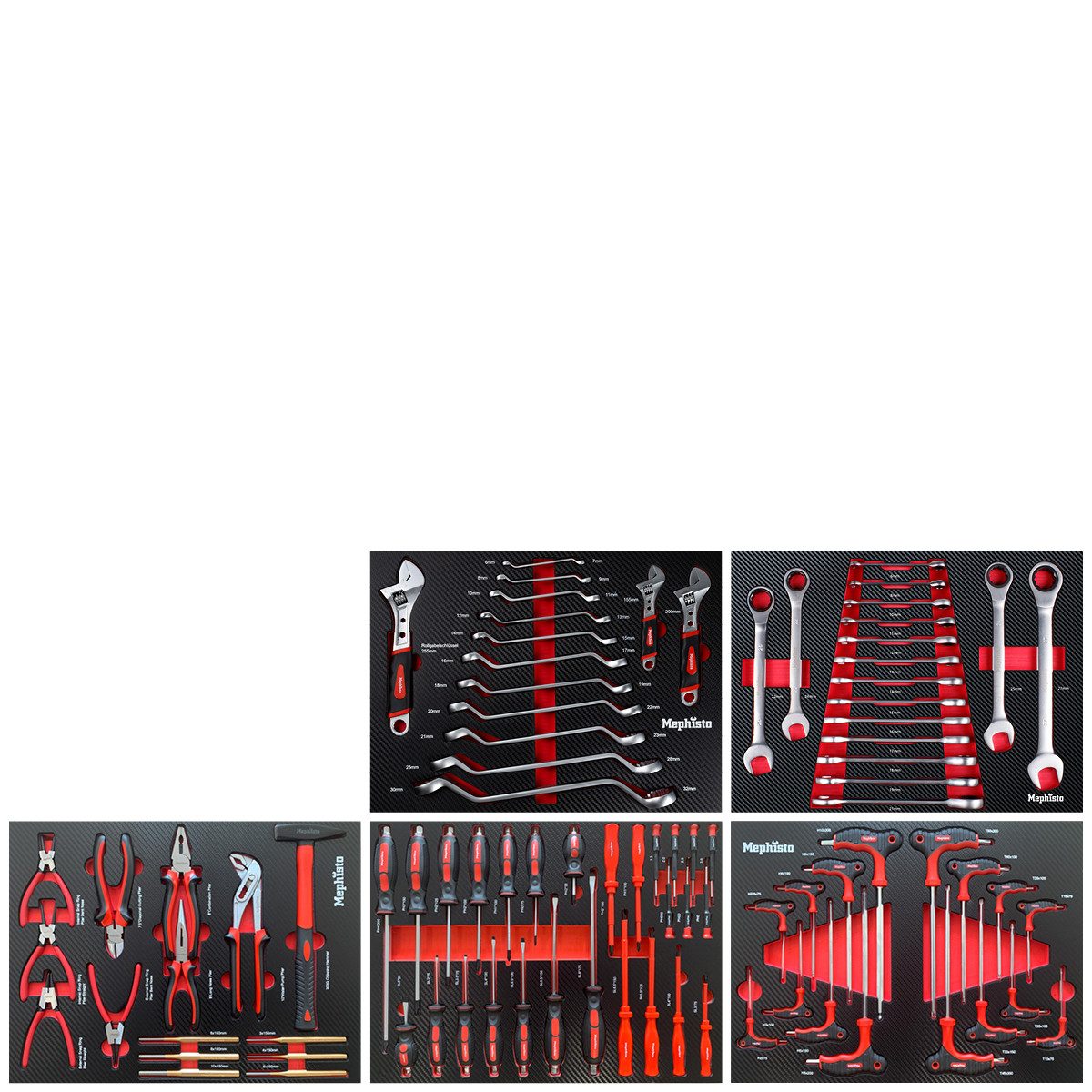 | Ausstattung | Maul- Ringschlüssel mit Ratsche Funktion, Schraubendreher- Set, Hammer und Zangen-Set, Rollgabelschlüssel, gekröpfte Ringschlüssel, Innensechskant und Innensechsrund Set mit T-Griff |