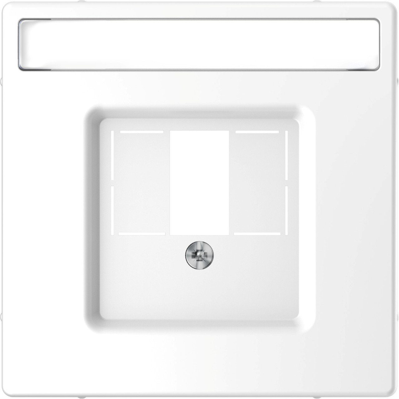 Baureihe: Merten System Design | Produkt oder Komponententyp: Abdeckplatte | Farbton: Lotusweiß (RAL 9003) | Zielort Produk: TAE/Audio/USB | Oberflächenbehandlung: Glänzend | Befestigungsart: Mit Schrauben | Material: Thermoplast | Schutzart: IP20 | Höhe: 71 mm | Breite: 71 mm | Tiefe: 15 mm |