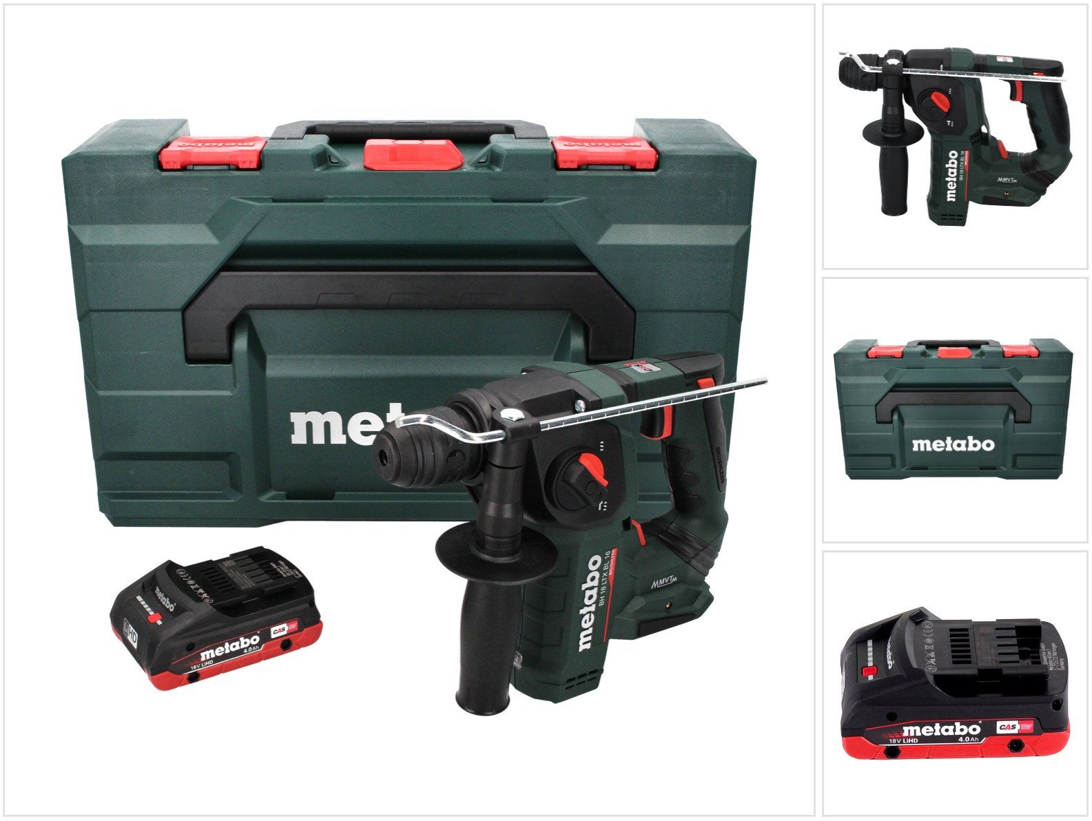 Der Akku-Hammer BH 18 LTX BL 16 mit SDS-plus Werkzeugaufnahme ist ein sehr leichter, kompakter Akkuhammer der durch seinen Brushless-Motor und die Metabo Vibratechh (MTV) für ermüdungsarmes und gesundheitsschonendes Arbeiten sorgt, auch im Dauereinsatz. Die Brushless Technologie und das Hochleistungsschlagwerk sorgen außerdem für maximale Bohrleistung, Effizienz und Lebensdauer. Die integrierte Vario-Tacho-Constamatic (VTC)-Vollwellenelektronik untersützt das Arbeiten mit materialgerechten Drehzahlen, die unter Last konstant bleiben. Sein LED Arbeitslicht unterstützt dabei die Sicht auf die Bohrstelle. Der Bohrhammer verfügt über die zwei Funktionen Hammerbohren und Bohren. Zur eigenen Sicherheit verfügt der Bohrhammer über eine elektronische Sicherheitsabschaltung beim Blockieren des Einsatzwerkzeugs. Der Metabo BH 18 LTX BL 16 eignet sich ideal für das Bohren in Stein und Beton kann aber auch für Stemmarbeiten oder das Entfernen von Fliesen verwendet werden. Metabo ist ein renommierter Anbieter für Elektrowerkzeuge und steht für hochwertige Qualitätsprodukte "von Profis für Profis".