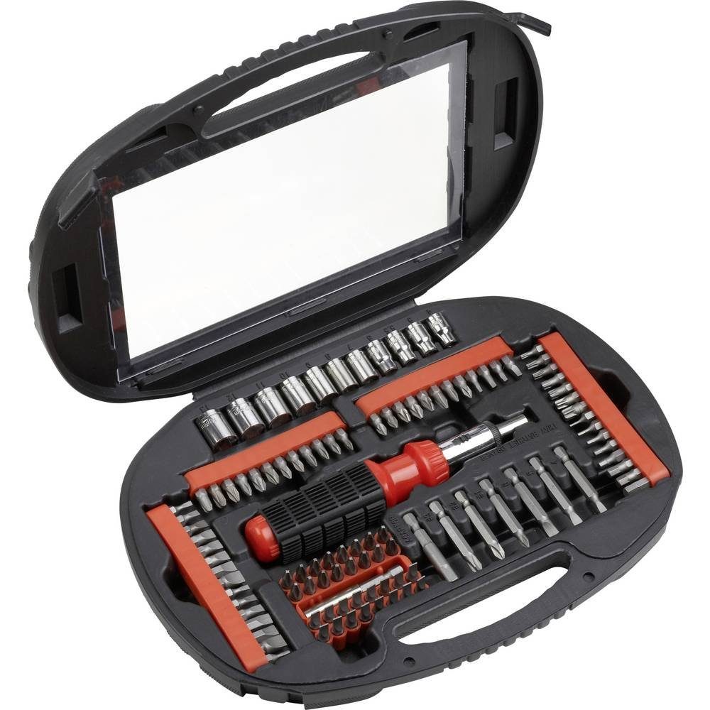 | Eigenschaften | Bits-Besonderheiten: inkl. Bithalter · Material: Carbonstahl · Mengenangaben (LOV - Nur für Titel): 106teilig |