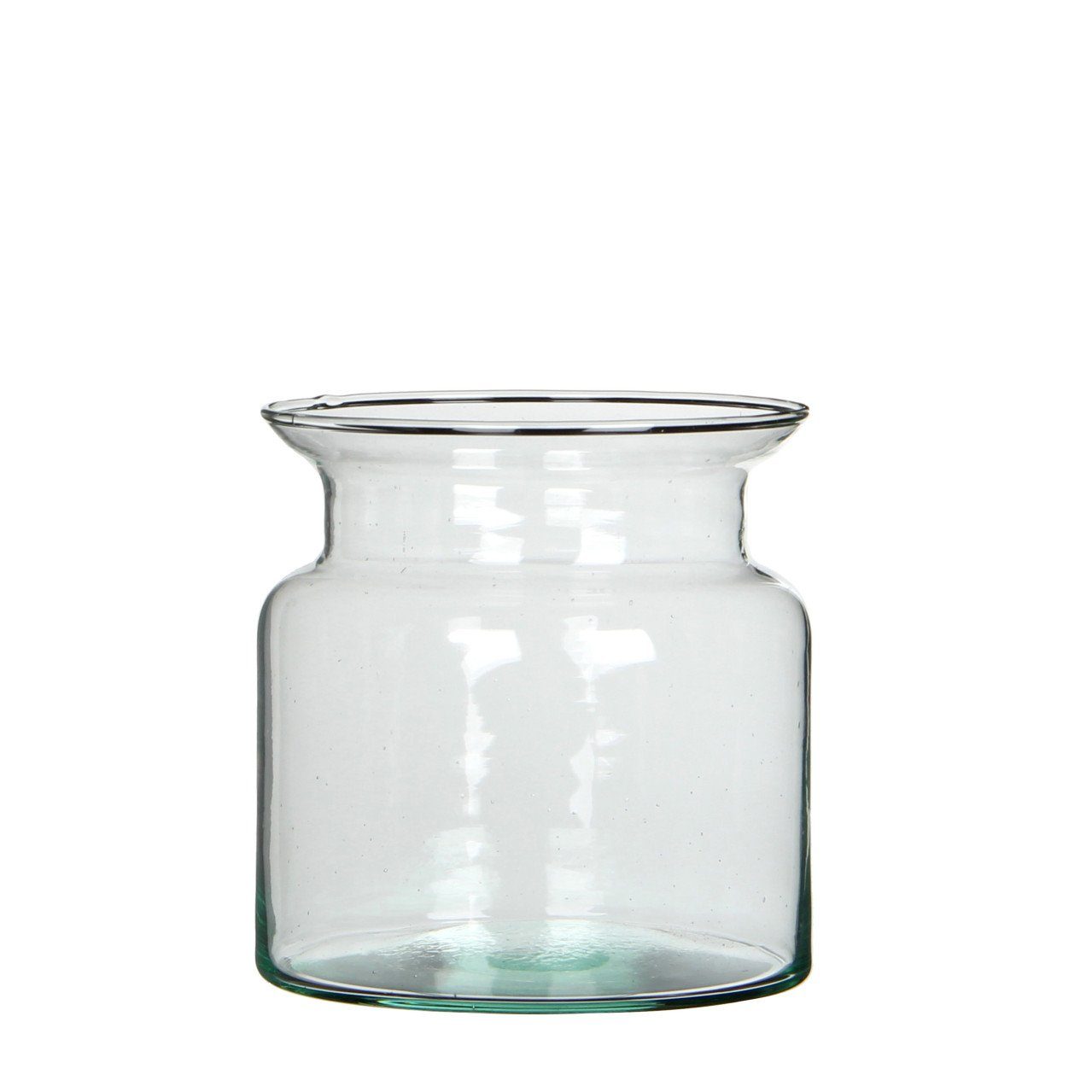 Der Glasbehälter Mathew aus der Kollektion erscheint auf den ersten Blick ganz normal, aber jedes Stück ist ein absolutes Unikat! Die Vase wird nämlich in Polen von Hand angefertigt. Dies geschieht mit 100 % recyceltem Glas, also auch noch sehr nachhaltig! Die Vase hat eine schlichte, gerade Form mit einer weiten Öffnung. Stellen Sie einen Blumenstrauß hinein und die Stiele fallen schön auseinander. Sie können ihn evtl. auch als Dekorationsgegenstand mit Steinchen und etwas Grün verwenden.