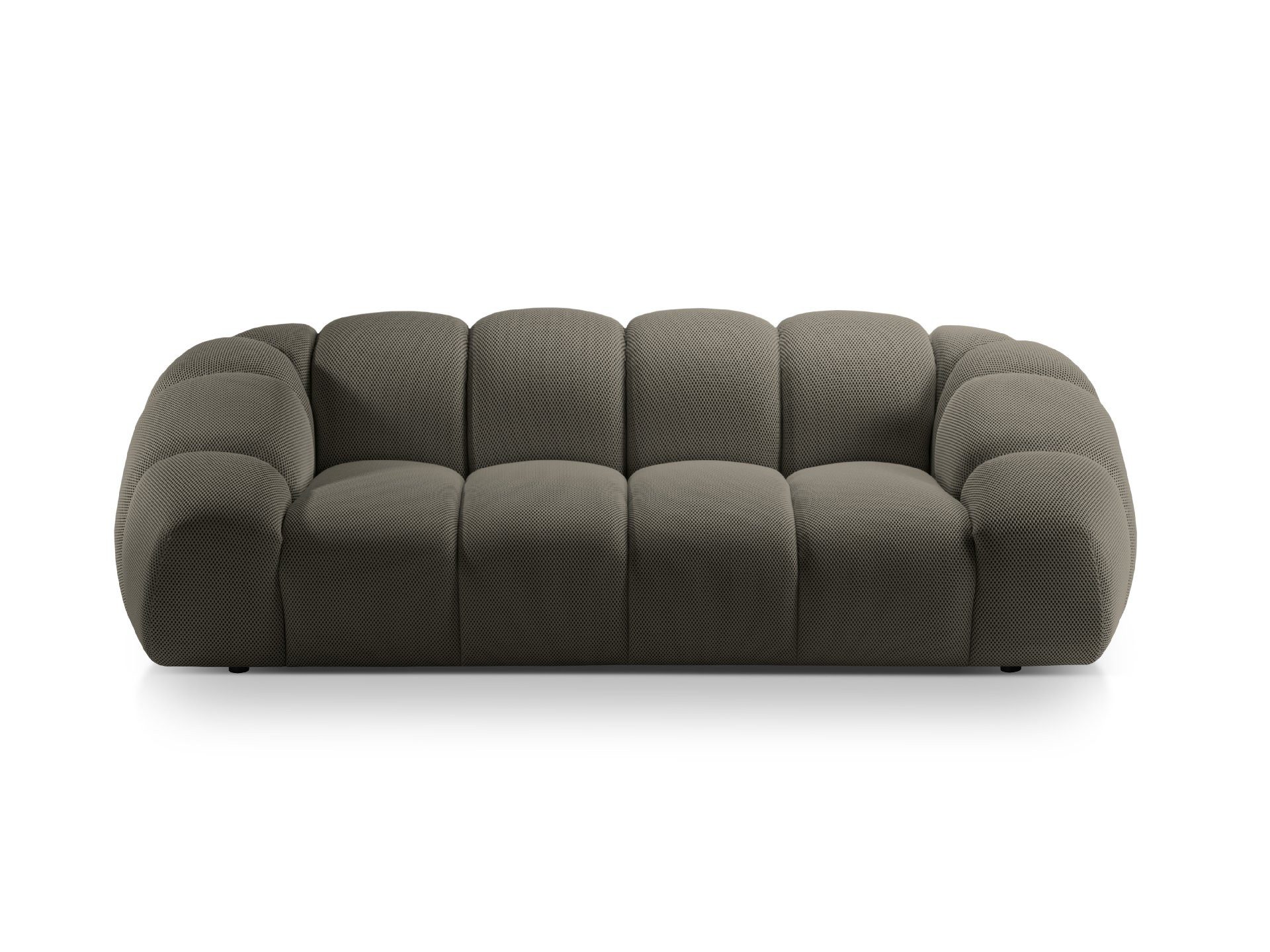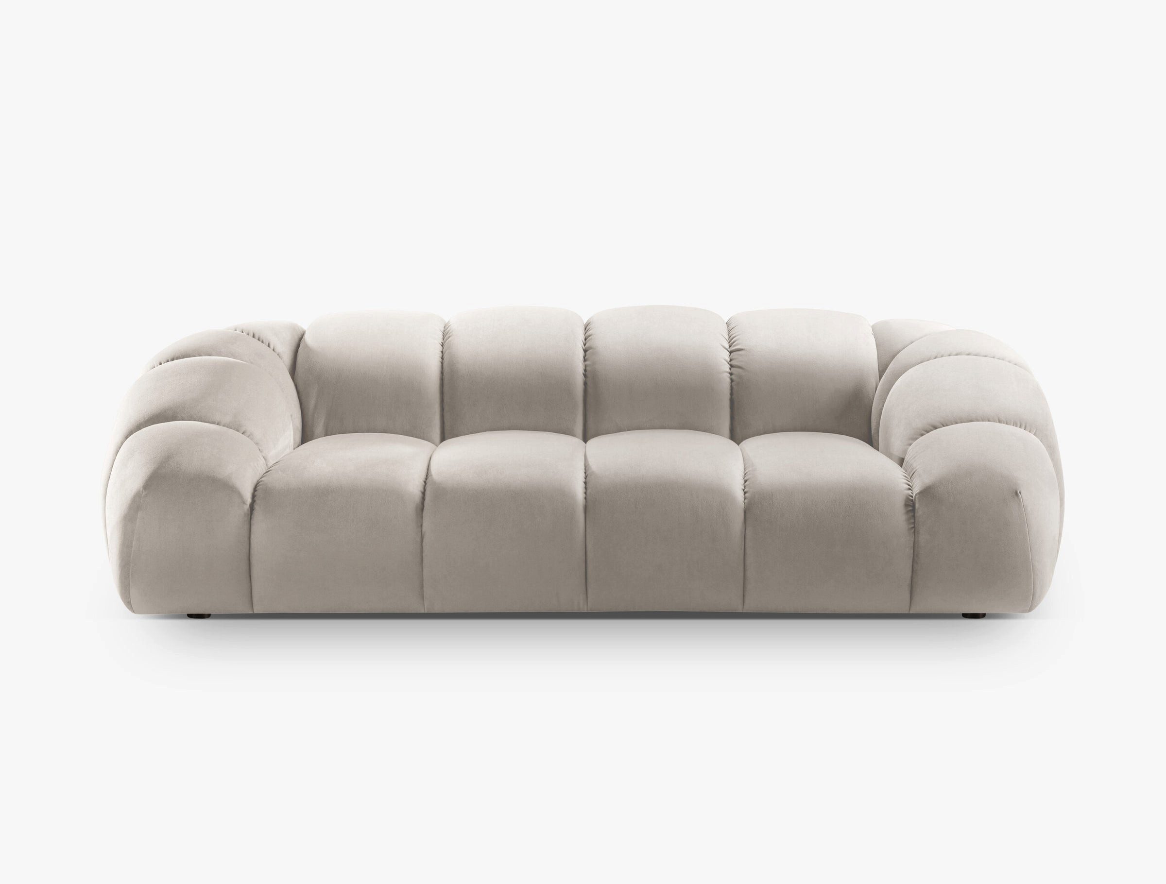 Egal, ob Sie sich für den eleganten Samtstoff oder den modernen 3D-Stoff entscheiden - beide Stoffe sind extrem strapazierfähig und mit einer Scheuertouren-Zahl von 60.000 für den täglichen Gebrauch ausgelegt. Die schwarzen Kunststofffüße verleihen dem Sofa einen subtilen, schwebenden Look, der perfekt in moderne Wohnräume passt.