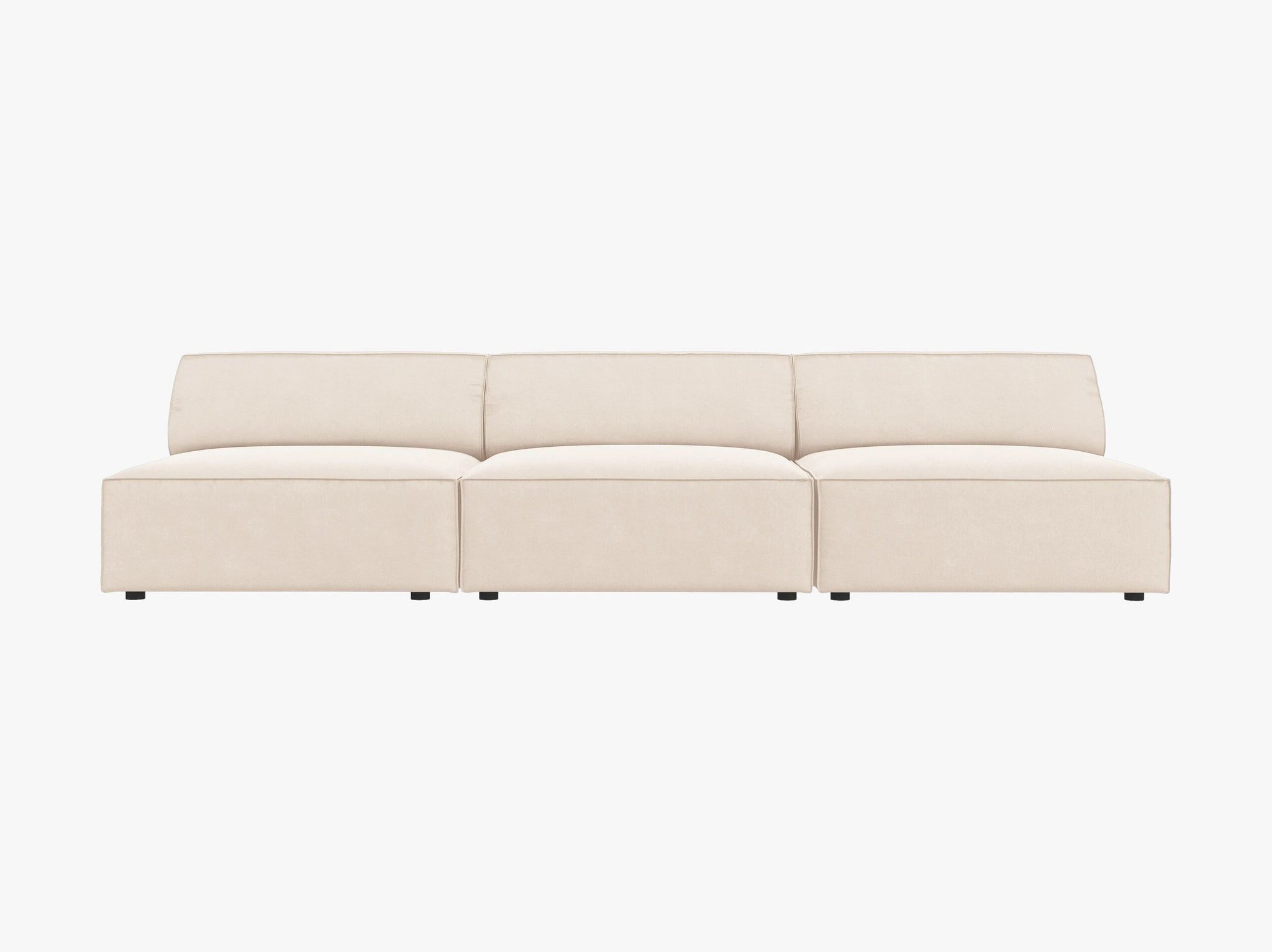 Das geräumige Modulsofa Jodie besticht durch seine schöne Silhouette. Die angenehm gepolsterte Form sorgt für perfekte Entspannung, während die tiefe, federnde Sitzfläche beste Voraussetzungen zum Relaxen bietet. Die konturierte Rückenlehne und die breiten Armlehnen laden zum entspannten Zurücklehnen ein. Wenn Sie auf der Suche nach einem spektakulären Sofa sind, auf dem Sie sich wohlfühlen und das trotzdem stilvoll ist, dann ist Jodie die beste Wahl. Die niedrigen Füße harmonieren mit der gemütlichen Silhouette des Möbels. Dank der großen Auswahl an Modulen können Sie Jodie ganz nach Ihren Wünschen kombinieren.