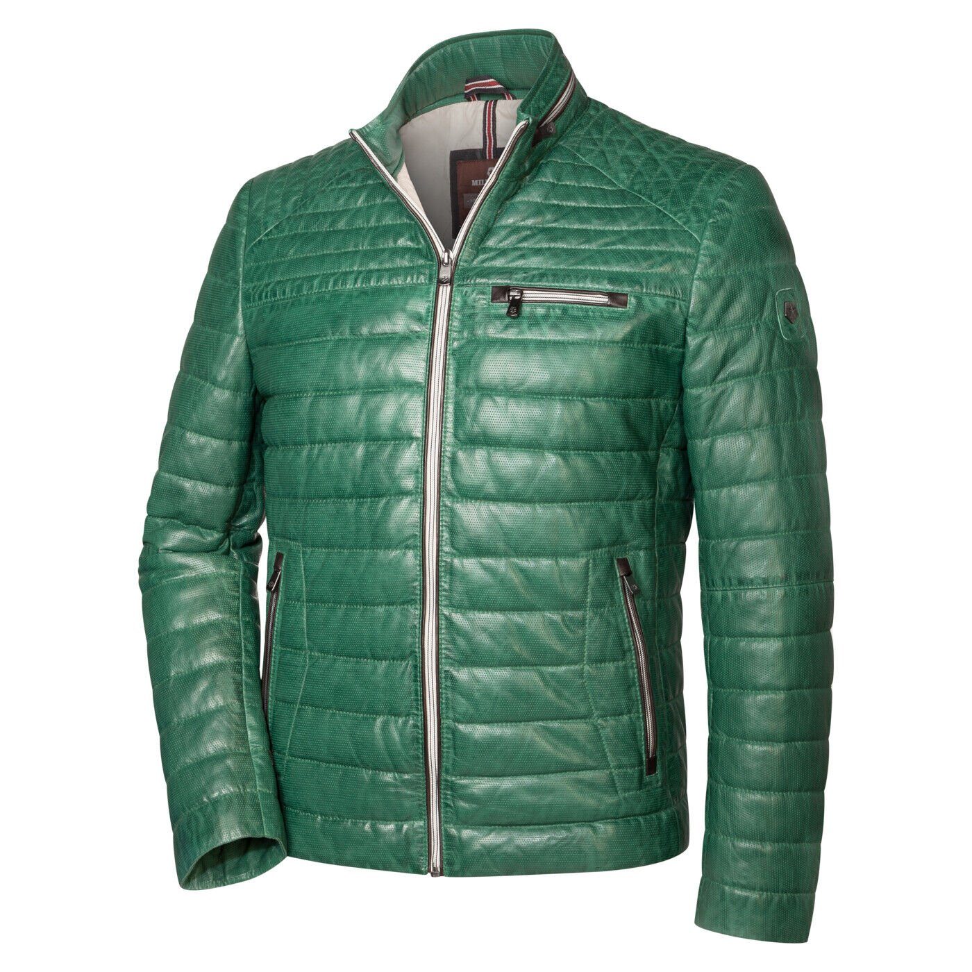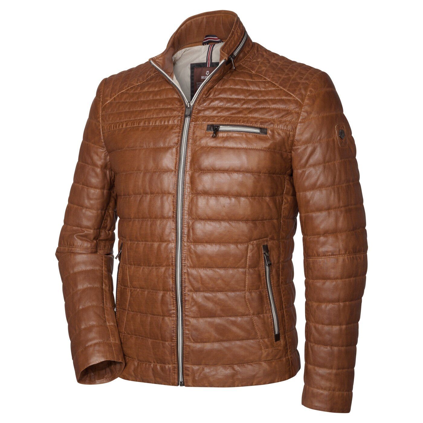 Für kühle Tage ist die wattierte Herren Lederjacke Terenz von Milestone optimal geeignet. Sportive Steppungen unterstreichen das modische Design. Das super weiche, feine Lammnappa-Leder mit dezentem Vintage Finish erhält mit der perforierten Optik eine lebendige Oberfläche. Das kontrastfarbige Futter überrascht mit einem plakativen Logo-Print in Vintage-Optik und praktischen Taschen. Die Ärmellänge (inkl. Schulter) bei Größe 50 beträgt ca. 82,5 cm. Oberstoff: 100% Leder; Futter: 100% Polyamid; Wattierung: 100% Polyester. Dieser Artikel enthält nichttextile Teile tierischen Ursprungs.