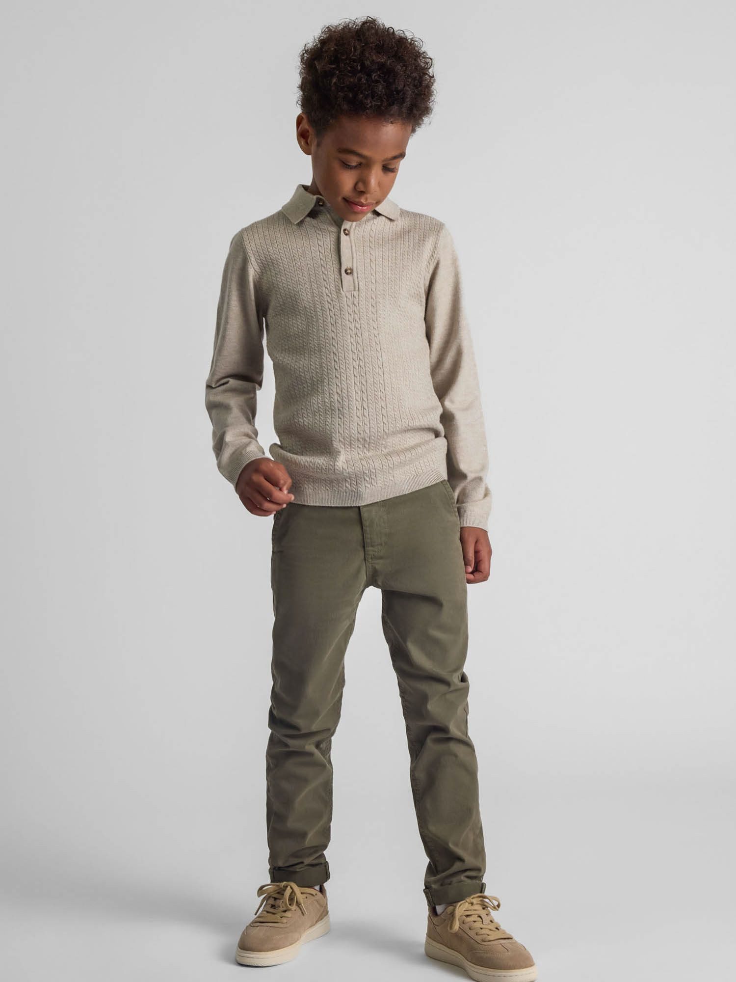 | Besondere Merkmale | Klassischer Chino-Schnitt mit angepasstem Bein |