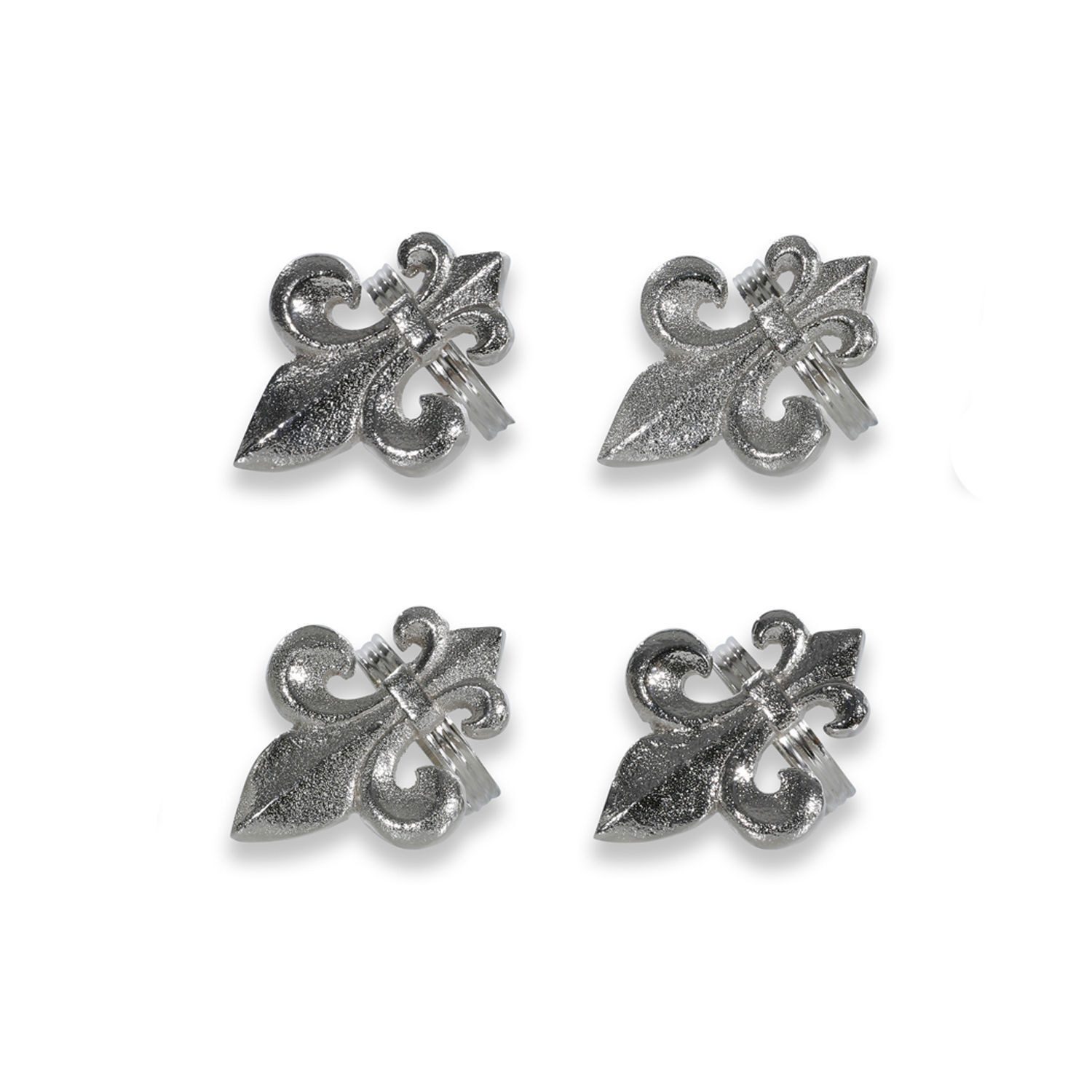 Edles Fleur-de-Lis-Design. Eleganter, französischer Stil. Stilvolles Quartett aus Aluguss. Das schicke Motiv der zeitlosen Lilie ziert die geschmackvollen Serviettenringe. Hiermit kommt ein Hauch royales Flair an Ihre Tafel. Ob einfach für Sie allein oder mit Gästen, so wird jedes Essen zum Festmahl. Liebevolle Details wie dieses stilsichere Set machen Ihr Zuhause zu einem echten Wohlfühl-Ort mit besonderem Charme. Drapieren Sie hiermit gekonnt Ihre Servietten und geben Sie Ihrer Tischdekoration den letzten Schliff.