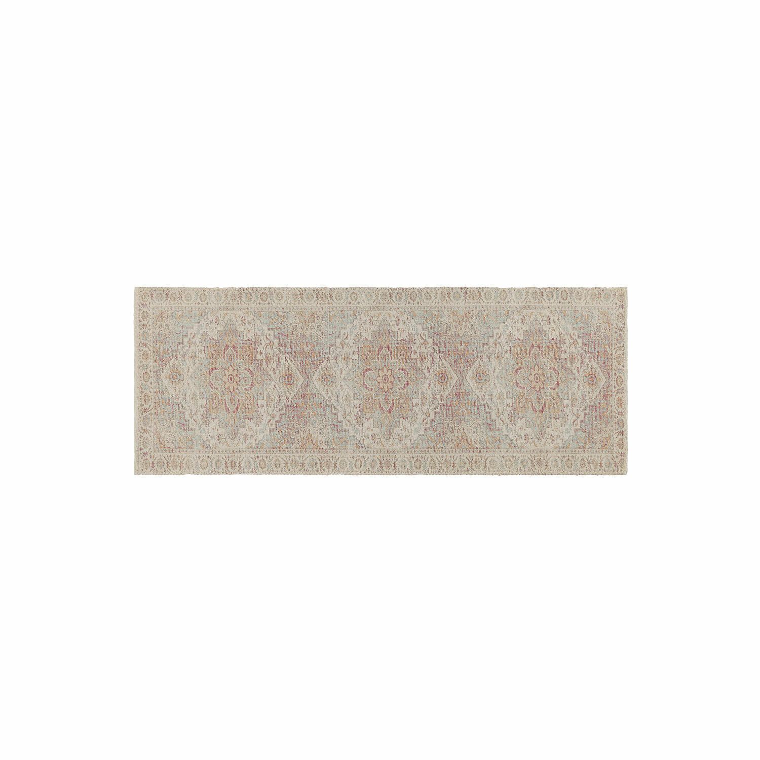 Dicht strukturgewebt mit weichem Griff – ein Fest für barfüßige Schritte. Orient-inspiriertes Muster in zarten, melierten Naturtönen. Ideal als warmer Akzent für Flur oder Schlafzimmer. Dieser Läufer verbindet traditionelles Ornamentdesign mit wohnlicher Zurückhaltung. Die weich strukturierte Oberfläche zeigt ein leicht verwaschen wirkendes, orientalisches Muster. Dank seines länglichen Formats fügt er sich harmonisch in schmale Räume ein – ob neben dem Bett, im Flur oder vor dem Lieblingssessel.