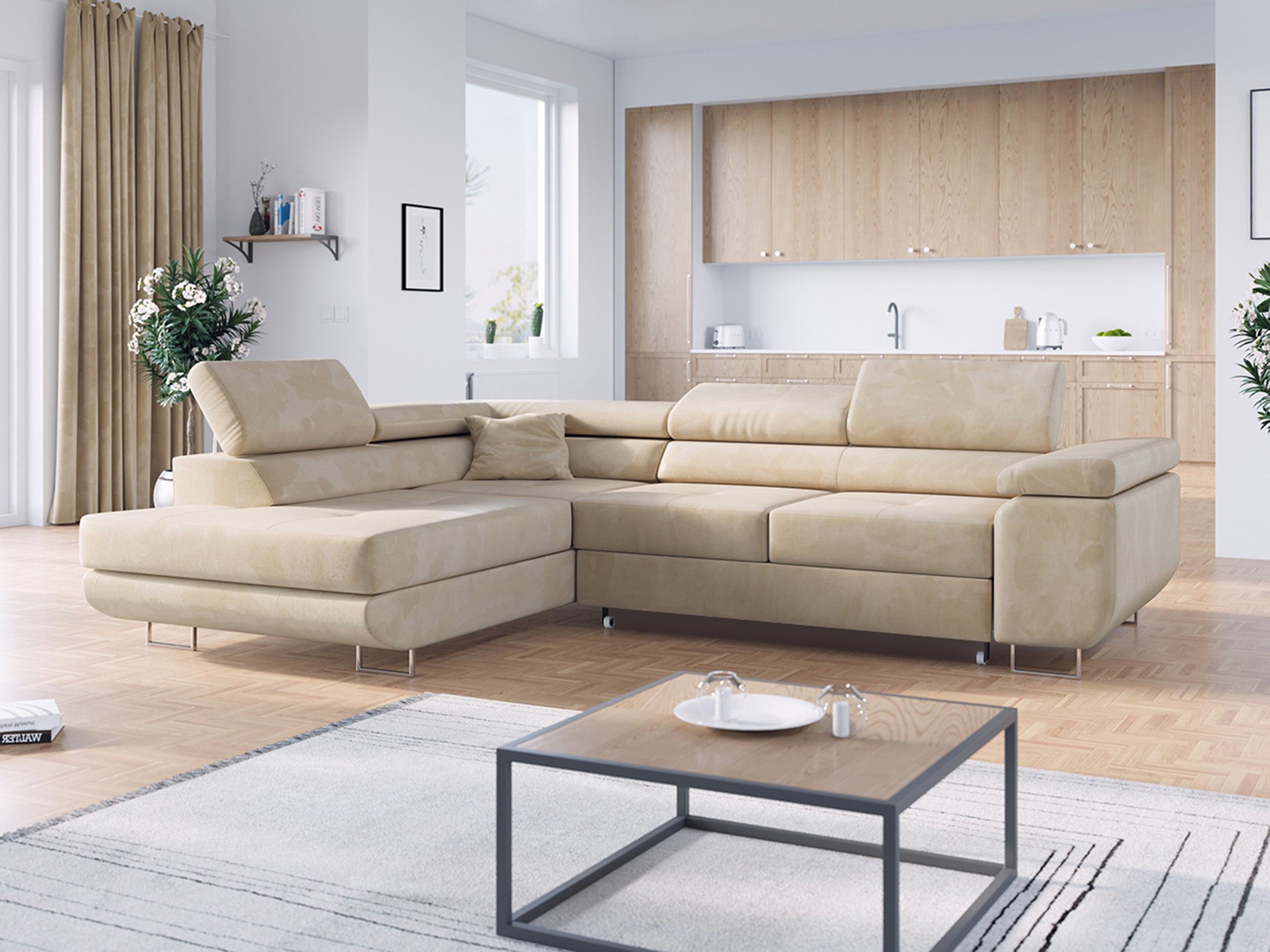 Ein Sofa mit Schlaffunktion und Bettkasten im skandinavischen Stil ist eine ideale Lösung sowohl für moderne als auch für klassische Interieurs. Hohe Strapazierfähigkeit, Stabilität und ein modisches Finish erfüllen auch die Bedürfnisse der anspruchsvollsten Kunden. geliefert.