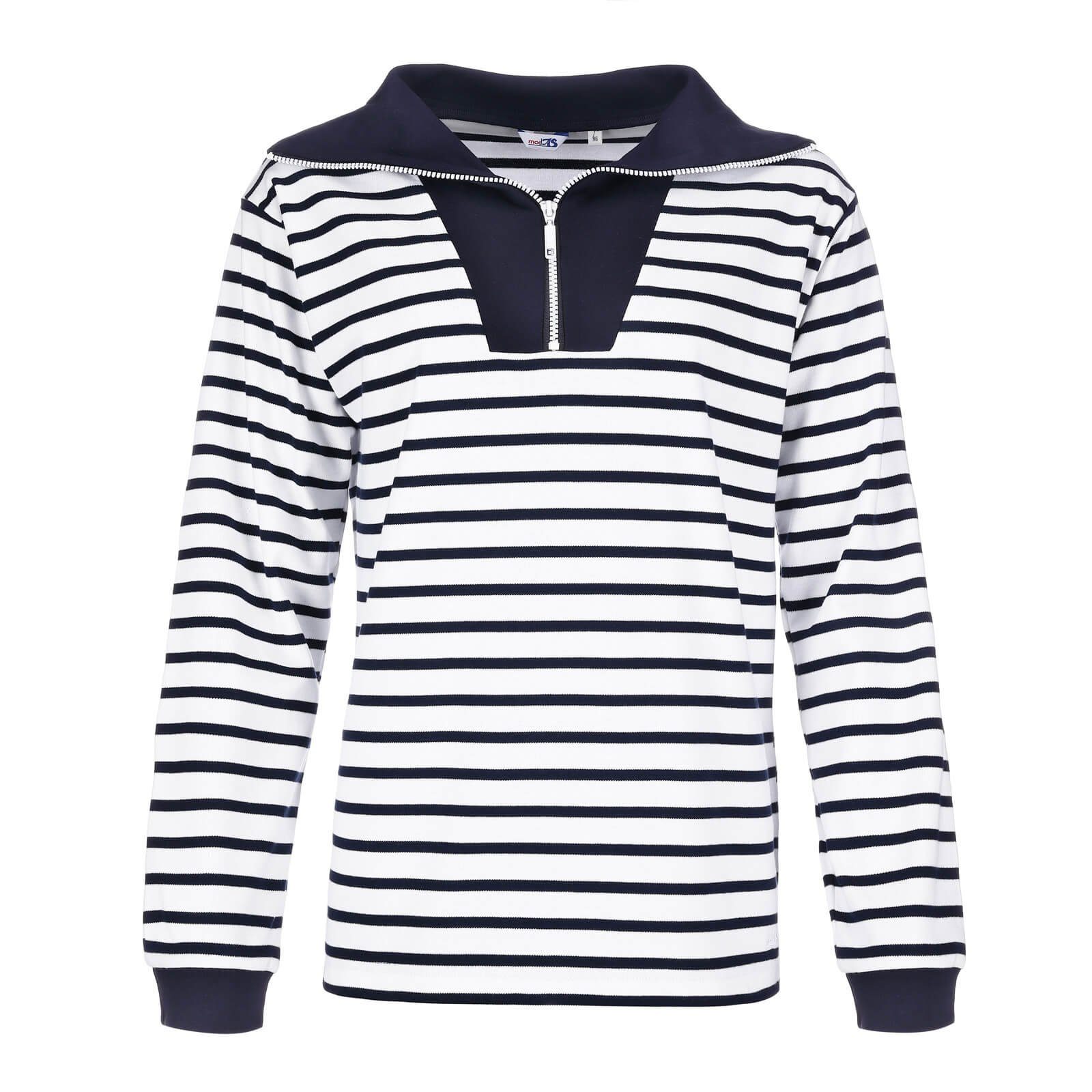 Verleihen Sie Ihrem Outfit eine frische, maritime Note mit unserem gestreiften Damen Troyer-Shirt.
