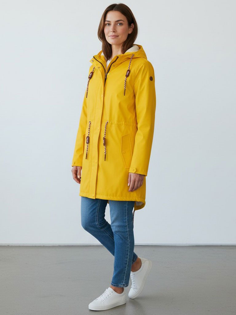 | Besondere Merkmale | Damen Regenmantel aus PU - Wasserdichte Jacke mit Teddy-Fleece-Futter |