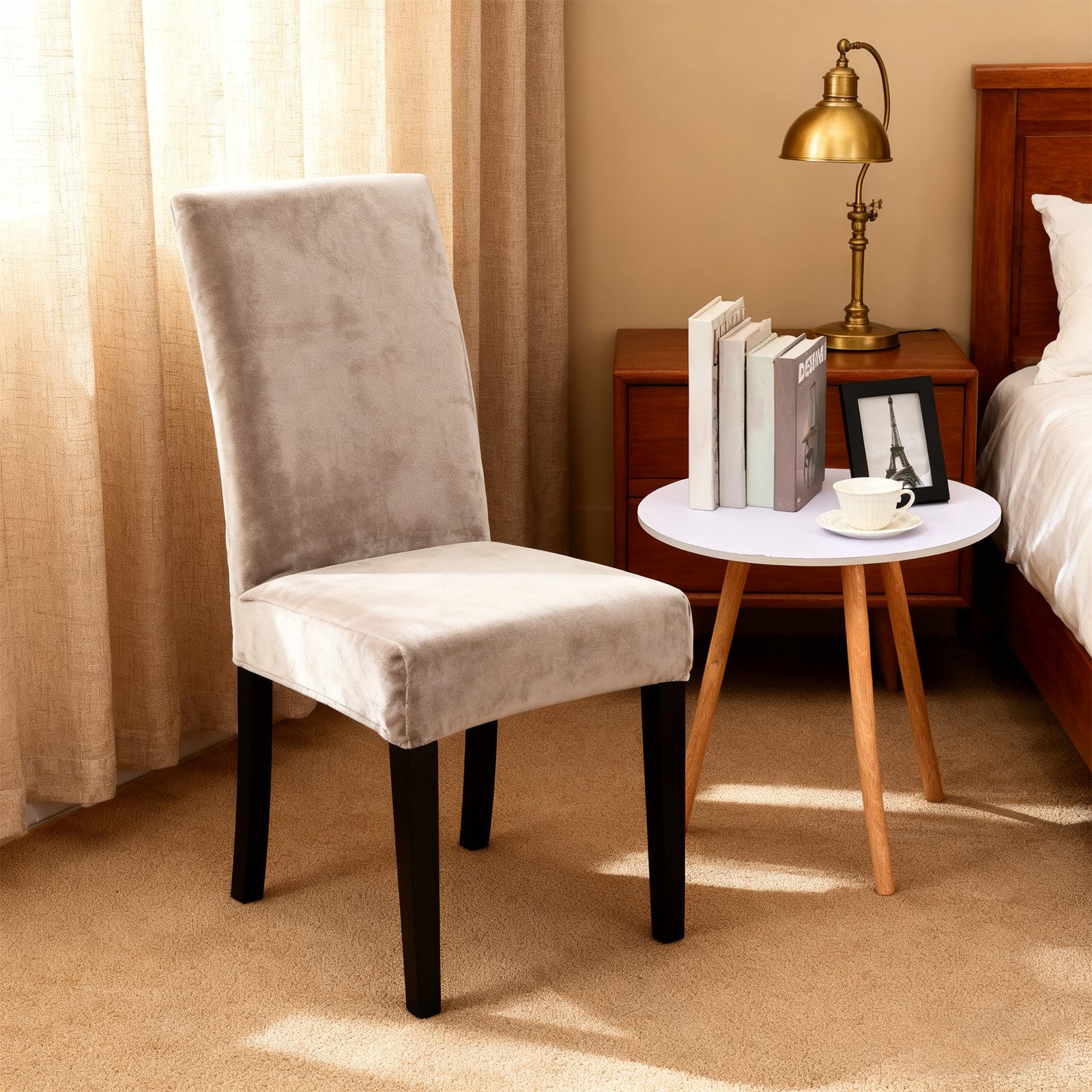 Die Stuhlhussen aus hochwertigem Samt passen sich perfekt an verschiedene Stuhltypen an. Sie schützen vor Flecken, Verschütten, Kratzern oder Rissen und verleihen Ihrem Esszimmer eine elegante und komfortable Optik.