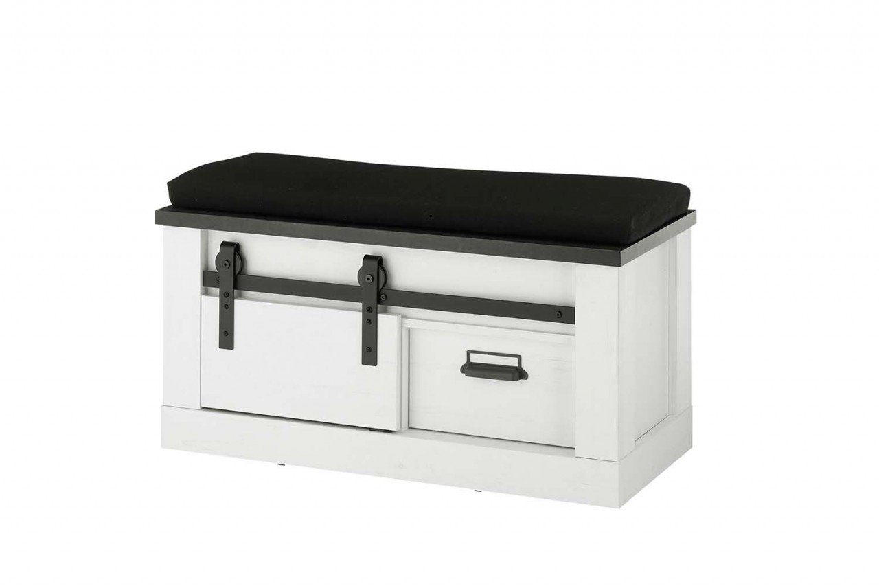 1x Garderobenbank mit Sitzkissen Sherwood - Pinie Weiß / Anthrazit