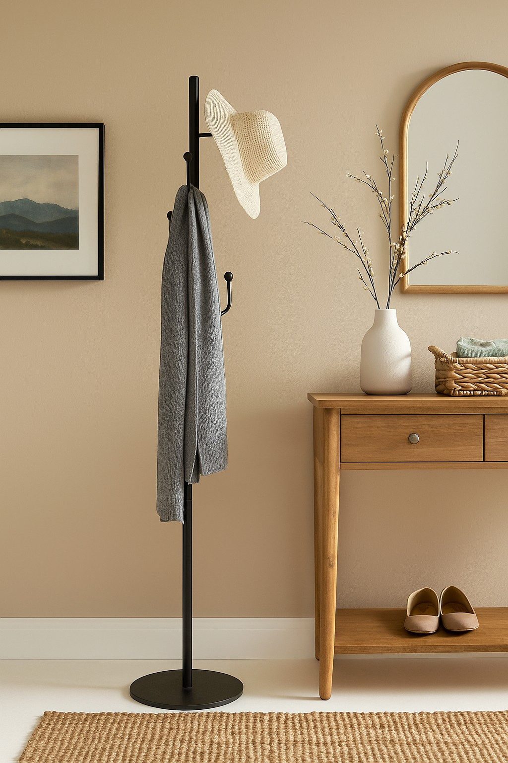 | Lieferumfang | 1x Garderobenständer, Standfuß, 6x Kleiderhaken, Aufbauanleitung, Montagematerial |
