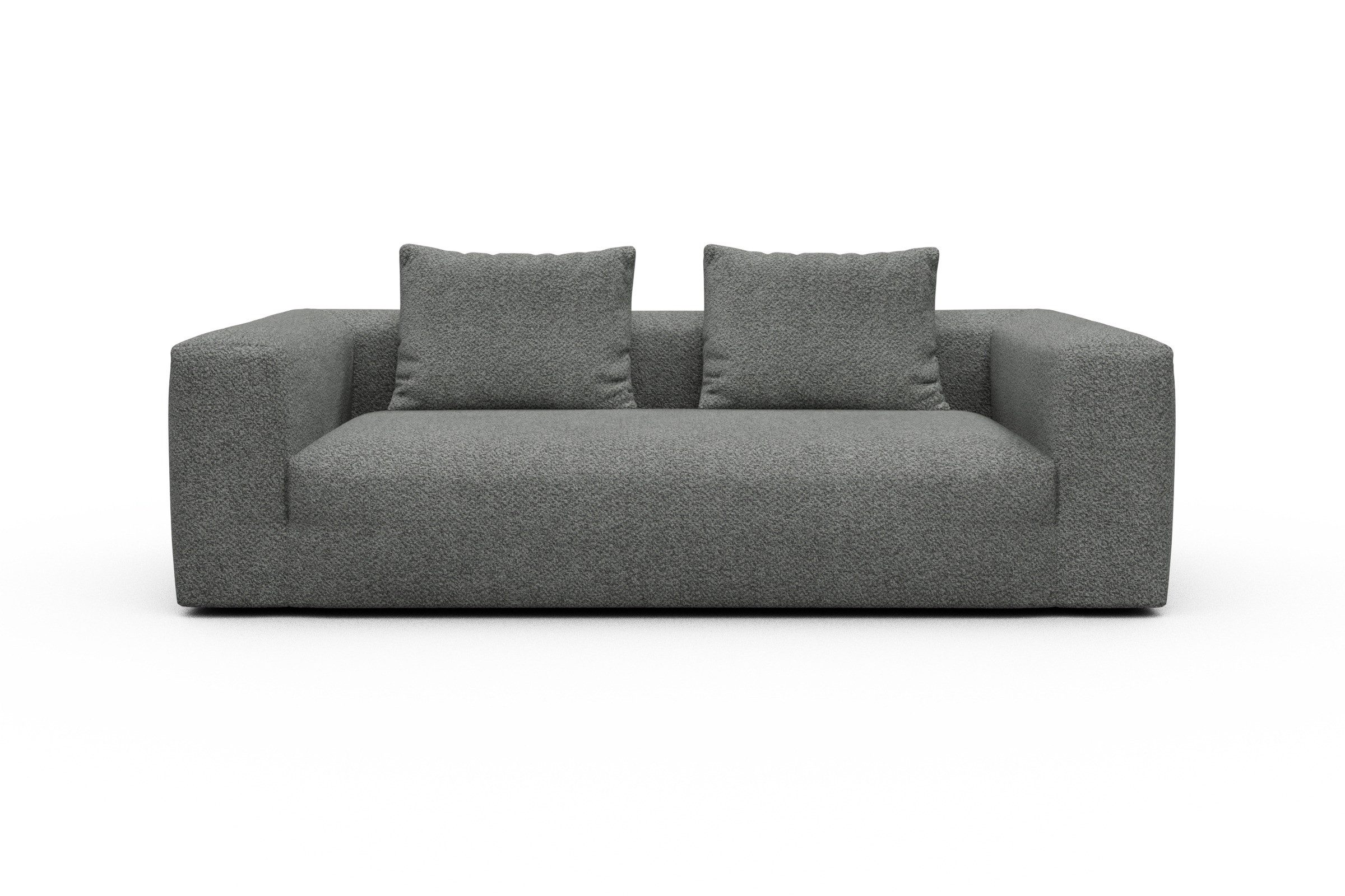 Der Bezug aus samtig-weichem Bouclé (90 % Polyester, 10 % recycelte Baumwolle) bringt nicht nur Struktur ins Spiel, sondern fühlt sich auch so gut an, wie er aussieht. Leicht glänzend, griffig fest und mit einer Abriebfestigkeit von 40.000 Scheuertouren auch für lange Serienabende gewappnet – ganz gleich, ob mit Popcorn oder Katze auf dem Schoß.