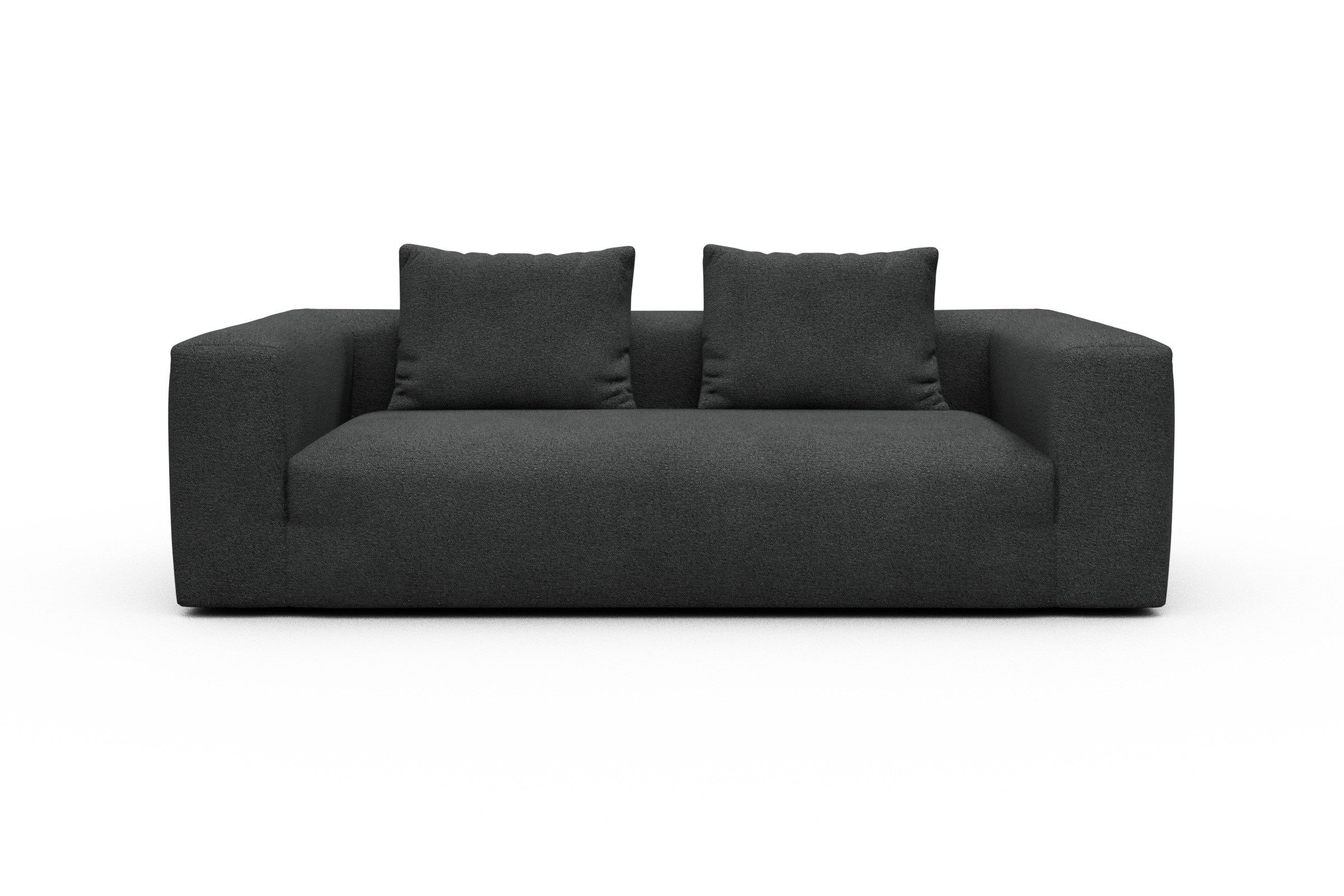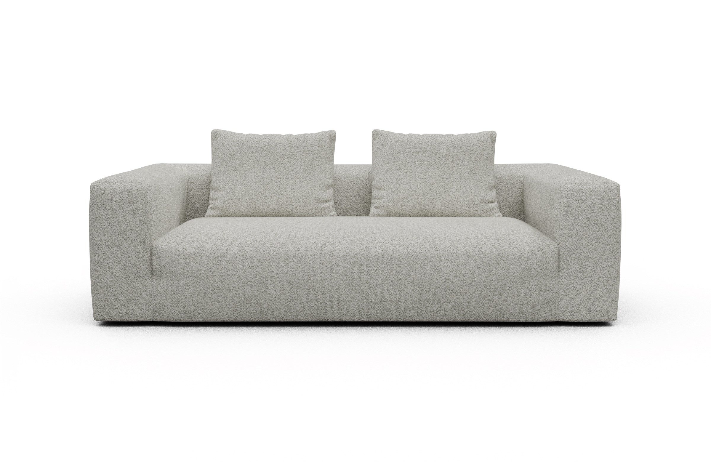 Mit einer Gesamthöhe von 64 cm, einer Breite von 237 cm und einer Tiefe von 102 cm ist Fred großzügig dimensioniert, ohne sich in den Vordergrund zu drängen. Die flachen Kunststofffüße halten sich dezent zurück, während der Bouclé-Bezug das Rampenlicht genießt. Das Sofa ist modular gedacht – also bereit, mit Ihnen und Ihrem Wohnstil zu wachsen.