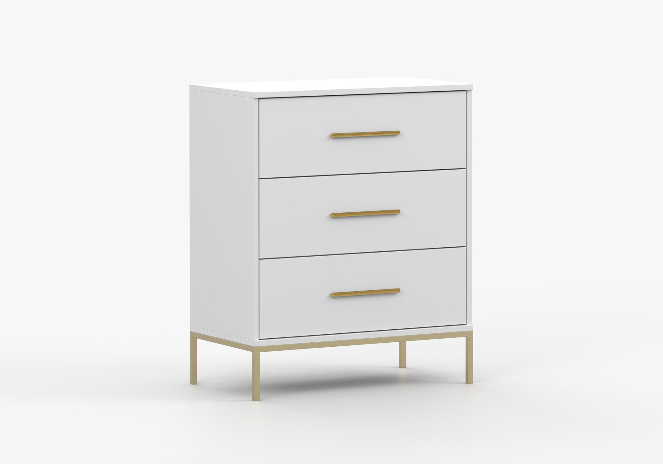 | Ausstattung | Drei geräumige Schubladen, pflegeleichte Oberfläche, goldfarbene Akzente |