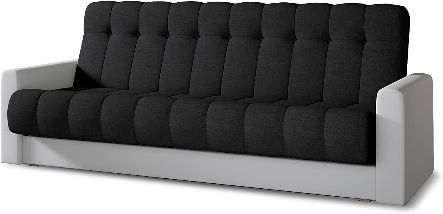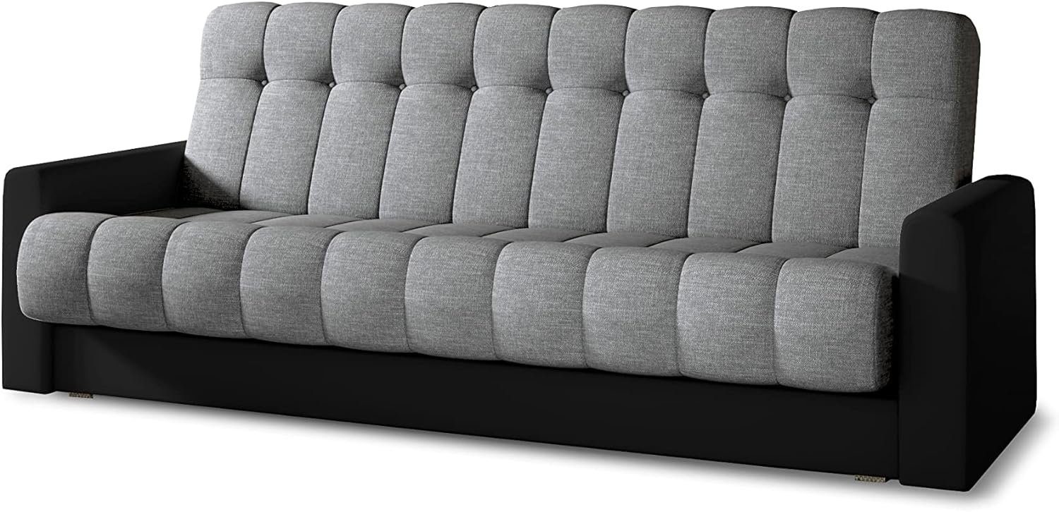 Mit den Maßen von 210 x 85 x 90 cm bietet es ausreichend Platz, um sich zu entspannen und den Komfort zu genießen. Dank der integrierten Schlaffunktion lässt sich das Sofa mühelos in ein gemütliches Bett verwandeln. Die Schlaffläche misst 115 x 190 cm, was es zu einer idealen Lösung für Gäste oder für den täglichen Gebrauch macht. Besonders praktisch ist der geräumige Bettzeugbehälter, der zusätzlichen Stauraum bietet und mit dem Klik-Klak-Öffnungsmechanismus problemlos bedient werden kann.
