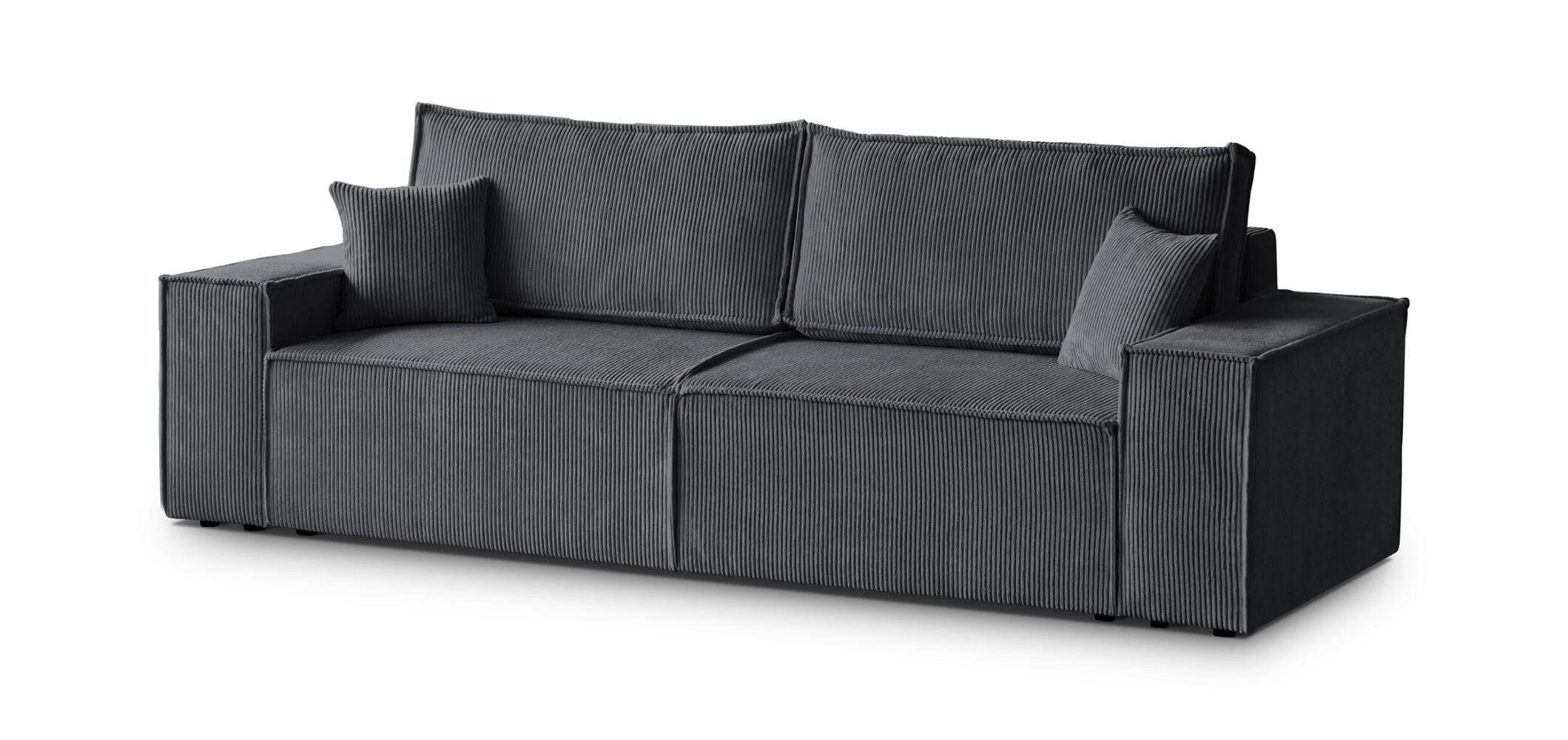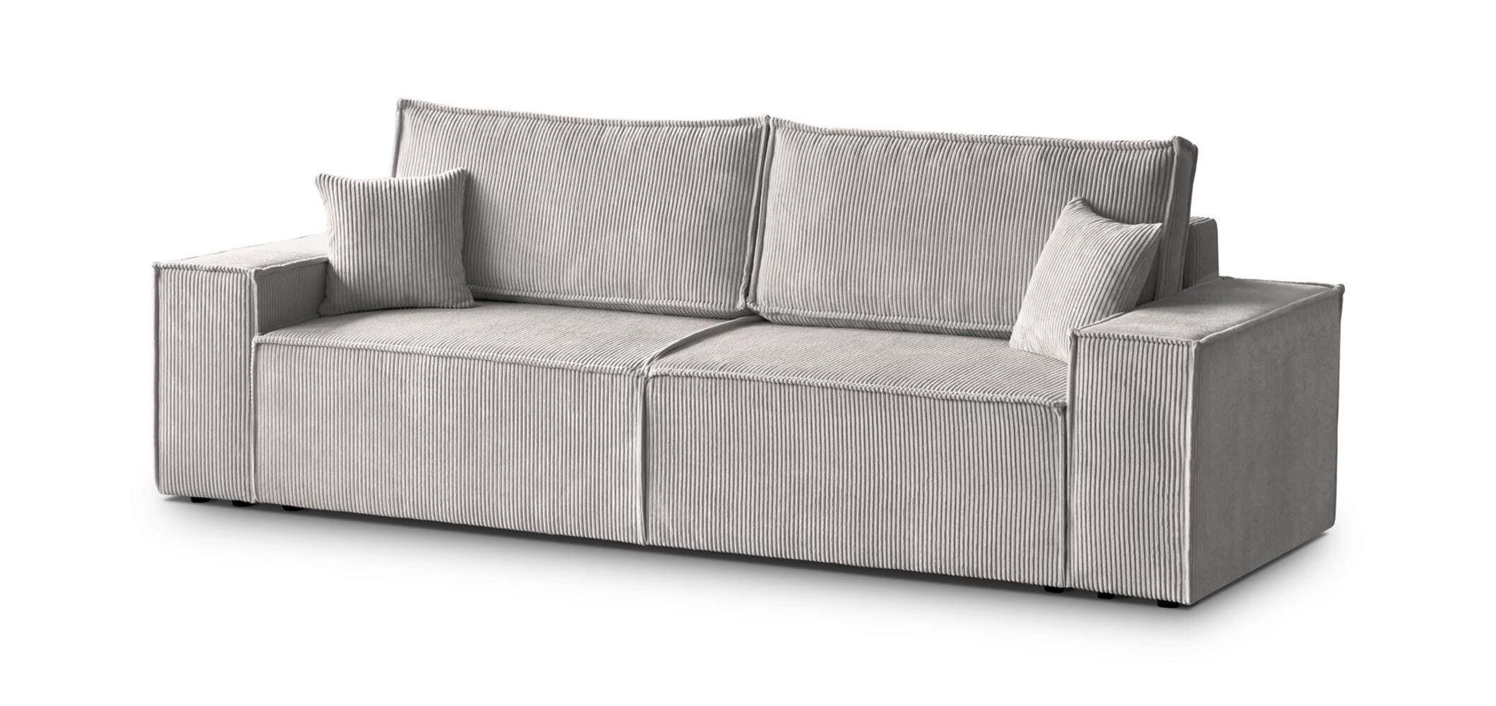 Der Poso-Stoff ist ein außergewöhnlich weicher Cord mit ausgeprägten, dicken Streifen, der Eleganz mit außergewöhnlicher Haltbarkeit verbindet. Er zeichnet sich durch seine hohe Abrieb-, Reibungs- und Lichtbeständigkeit aus. Seine Zusammensetzung (90 % Polyester, 10 % Nylon) gewährleistet Langlebigkeit und leichte Reinigung. Dank seiner haustierfreundlichen Eigenschaften ist der Poso-Stoff die ideale Wahl für Haustierbesitzer - kratzfest, praktisch und ästhetisch ansprechend. Mit einer Grammatur von 360 g/m² ± 5 % ist es eine solide Wahl für die nächsten Jahre.