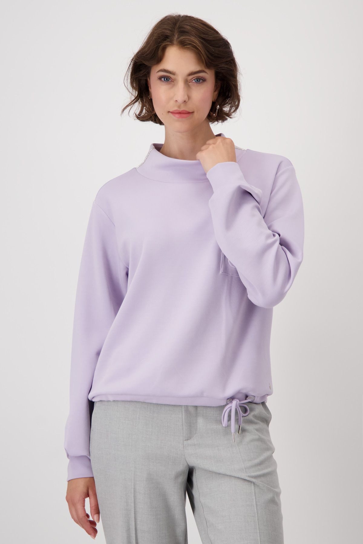 Dieses einzigartige Sweatshirt besticht durch seinen auffälligen 3-D-Druck auf der Brusttasche und den eleganten Schmuck am Stehkragen.