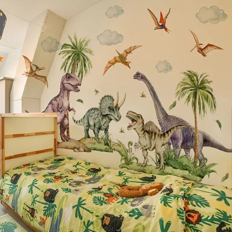 Bringen Sie Ihre Wände zum Leben mit diesem 2er Set kreativer Dinosaurier-Wandsticker Ideal für Schlafzimmer, Wohnzimmer, Flur, Eingangsbereich oder Kinderzimmer. Die liebevoll gestalteten Motive mit farbenfrohen Dinosauriern schaffen eine fröhliche und einladende Atmosphäre, die kleine und große Dino-Fans gleichermaßen begeistert. Ob verspielt oder dezent, dieses Wandtattoo-Set passt perfekt in moderne, zeitlose und kinderfreundliche Einrichtungskonzepte.