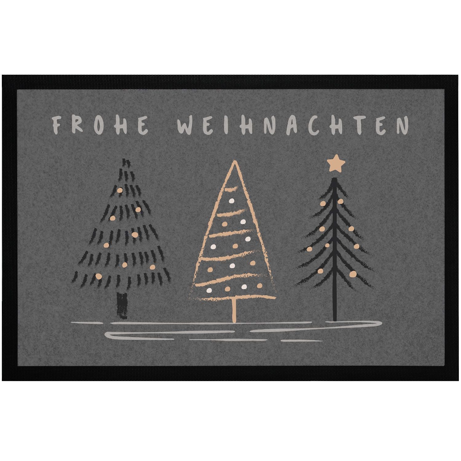 • Stilvolle Weihnachtsfussmatte mit minimalistischen Tannenbäumen und Schriftzug "Frohe Weihnachten – ein echter Blickfang für deine Weihnachtsdeko innen oder als
