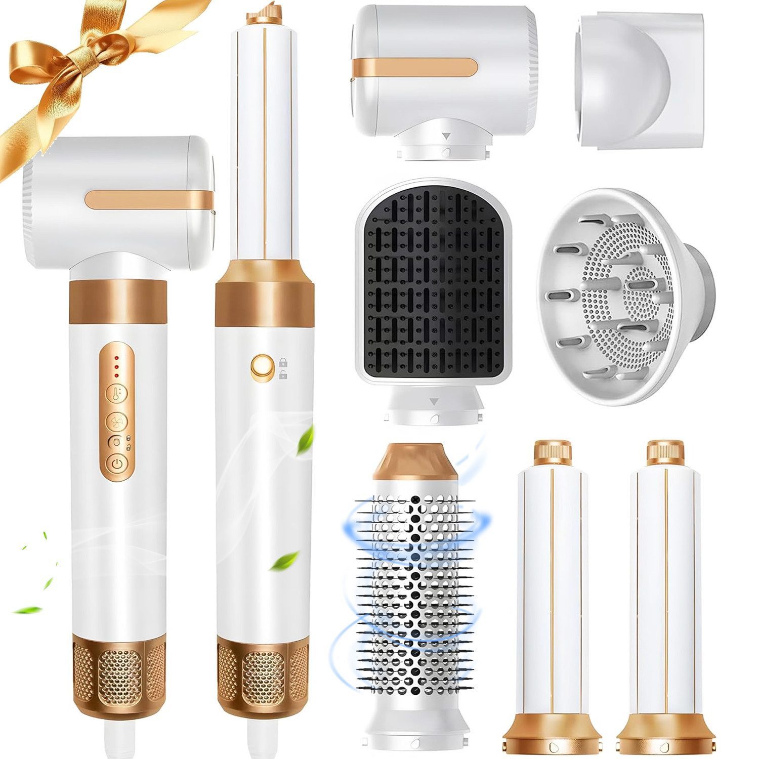 7-in-1 Haartrockner SetDieses vielseitige Haarset ist mit sieben verschiedenen Aufsätzen ausgestattet, darunter ein Haartrockner, eine Heißluftbürste, ein Rundkamm, ein luftumhüllender Lockenstab, ein Volumenstyler und ein Konzentrator, um Ihnen einfaches Styling und Zeitersparnis zu ermöglichen. Geeignet für verschiedene Frisuren, sowohl für Frauen als auch Männer.
