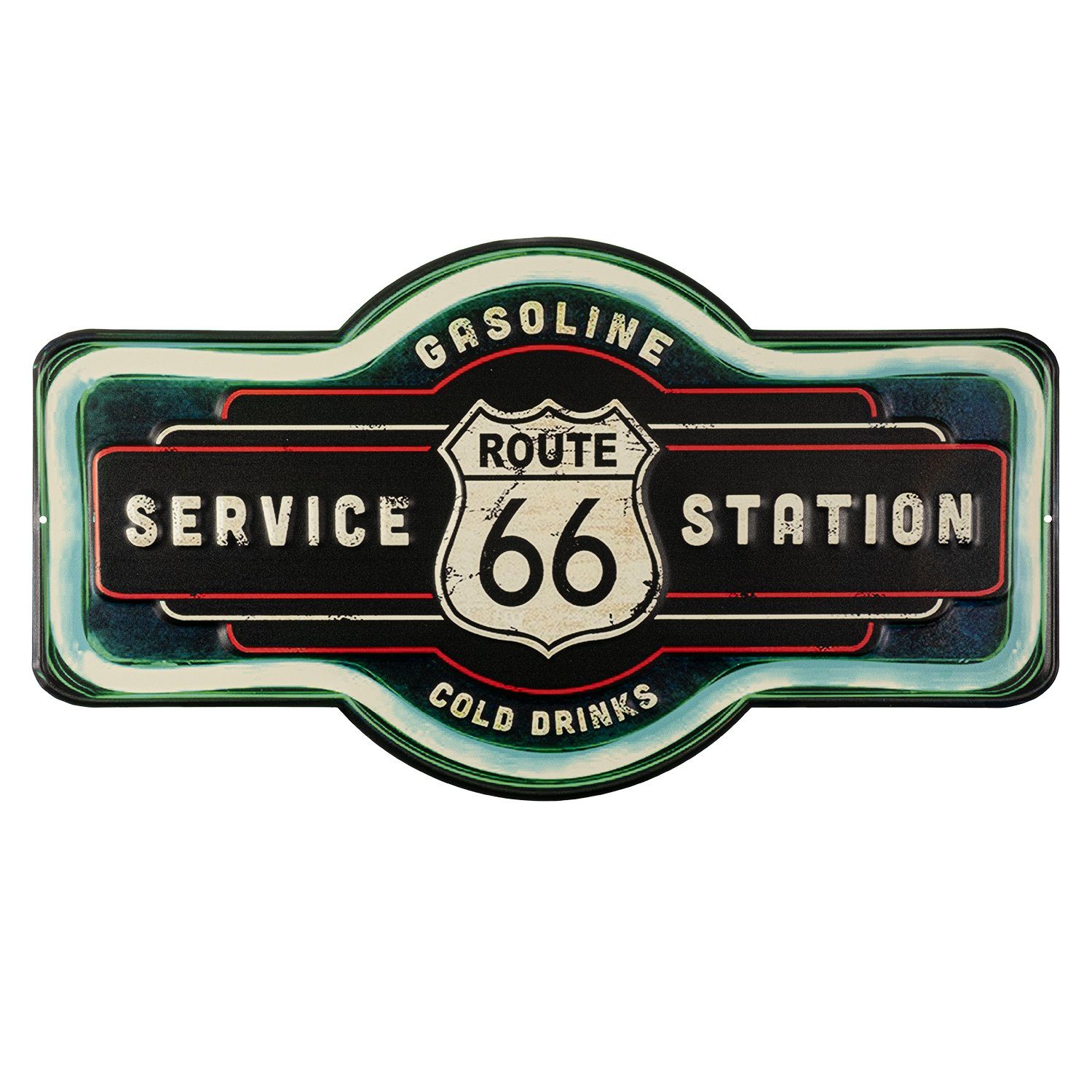 Moritz Metallschild Route 66 Tankstelle Gas Neon Look Bar USA US, Vintage Retro Deko Schild Metallschild Wandbild Schild