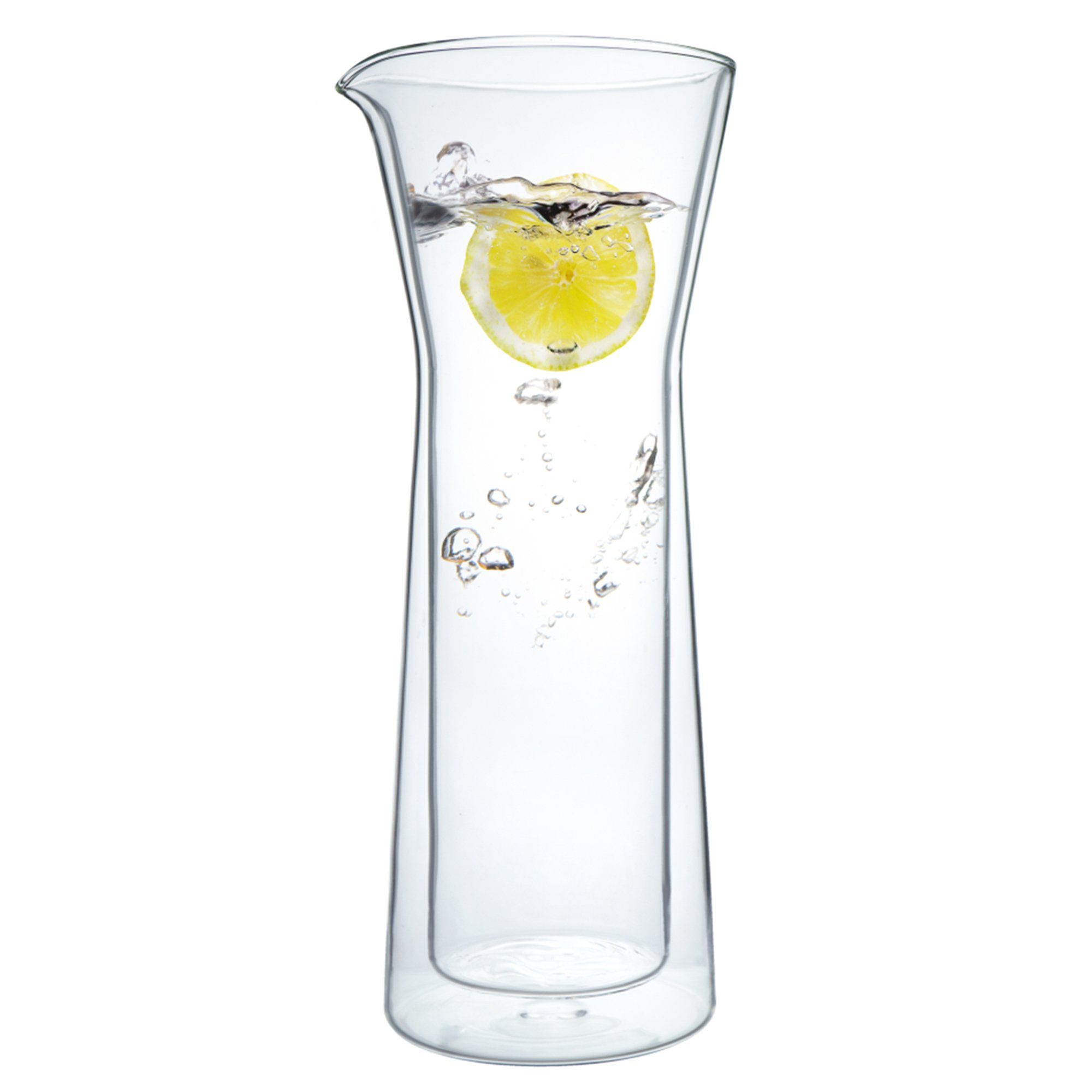 Weitere Informationen Doppelwandige Karaffe Material: Glas Maß: Ca. 10cm Ø, H ca. 25cm Fassungsvermögen: 690 ml