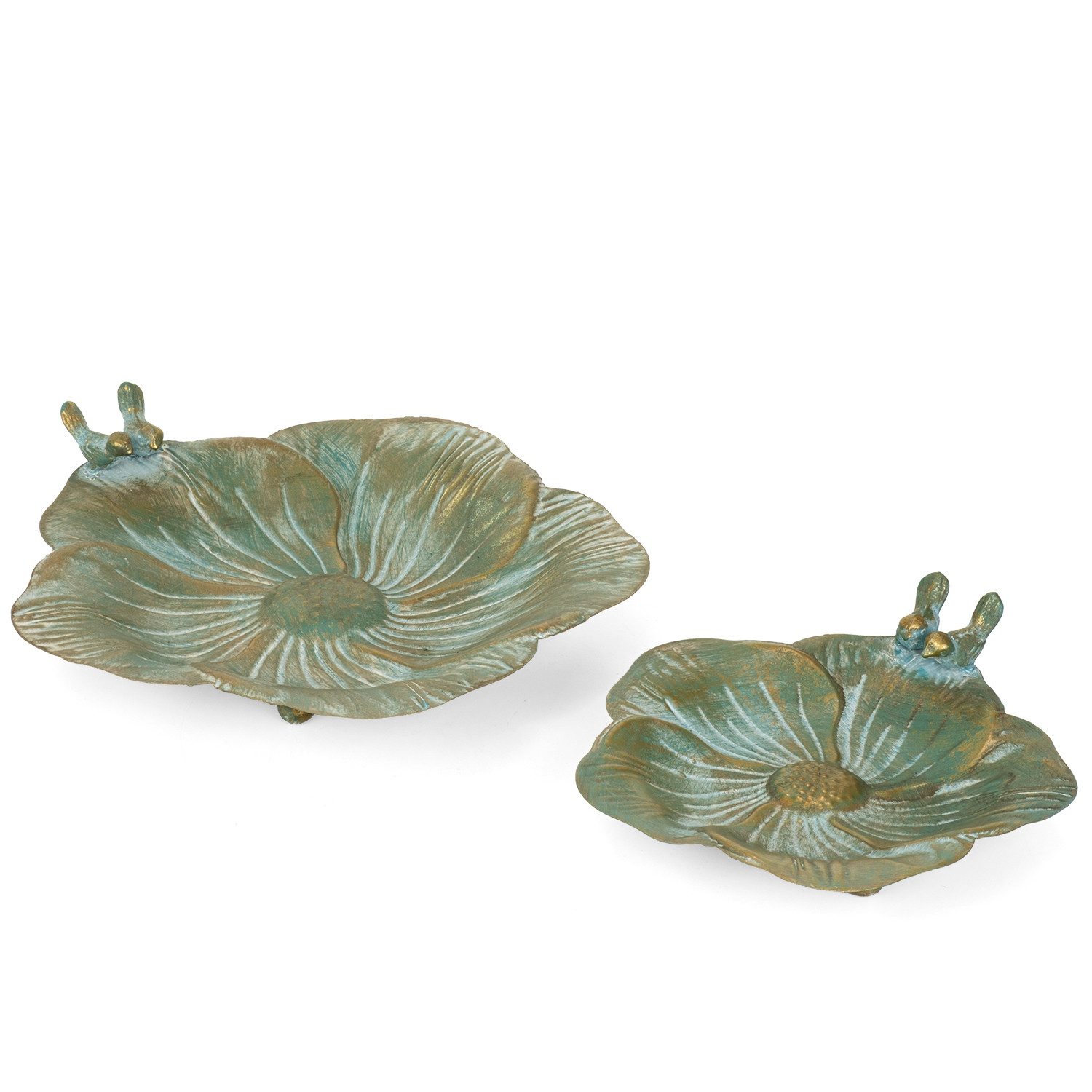 Vogeltränke Vogeltränke Vogelbad grün mit zwei Vögeln auf der Schale