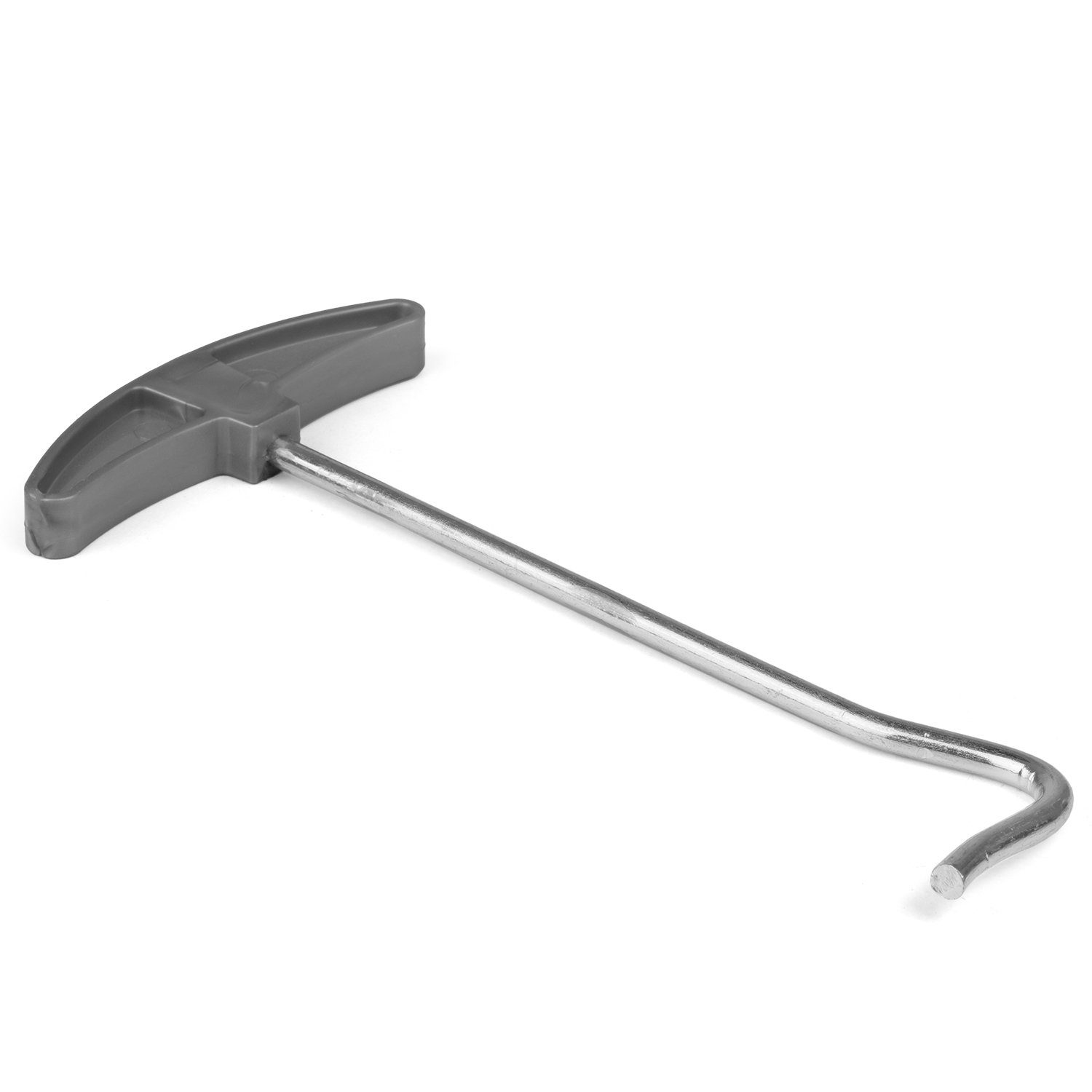Das stabile und langlebige Zeltzubehör besteht aus robustem Stahl und macht den Zeltabbau, vorallem das Herausziehen der Zeltpflöcke durch seinen handlichen Griff zu einer Leichtigkeit