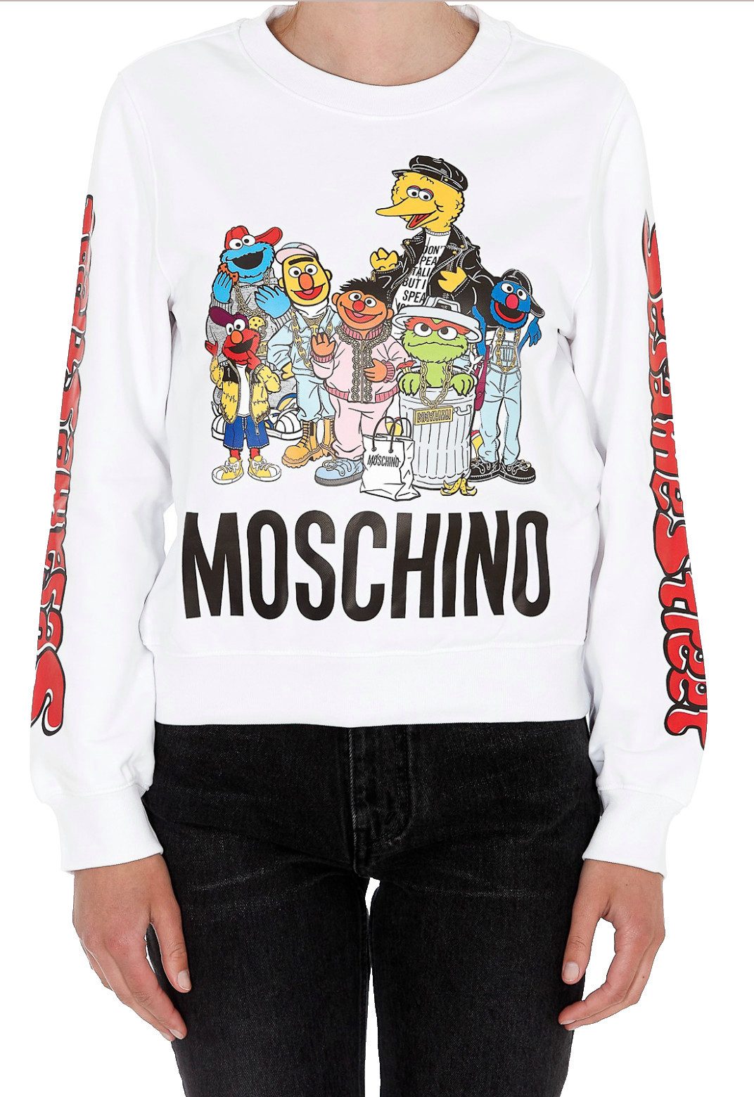 Dieses Sweatshirt aus der MOSCHINO x Sesame Street© Kollaboration bringt Spaß und Stil in Ihre Garderobe und ist ein Muss für alle Fans der ikonischen Charaktere.