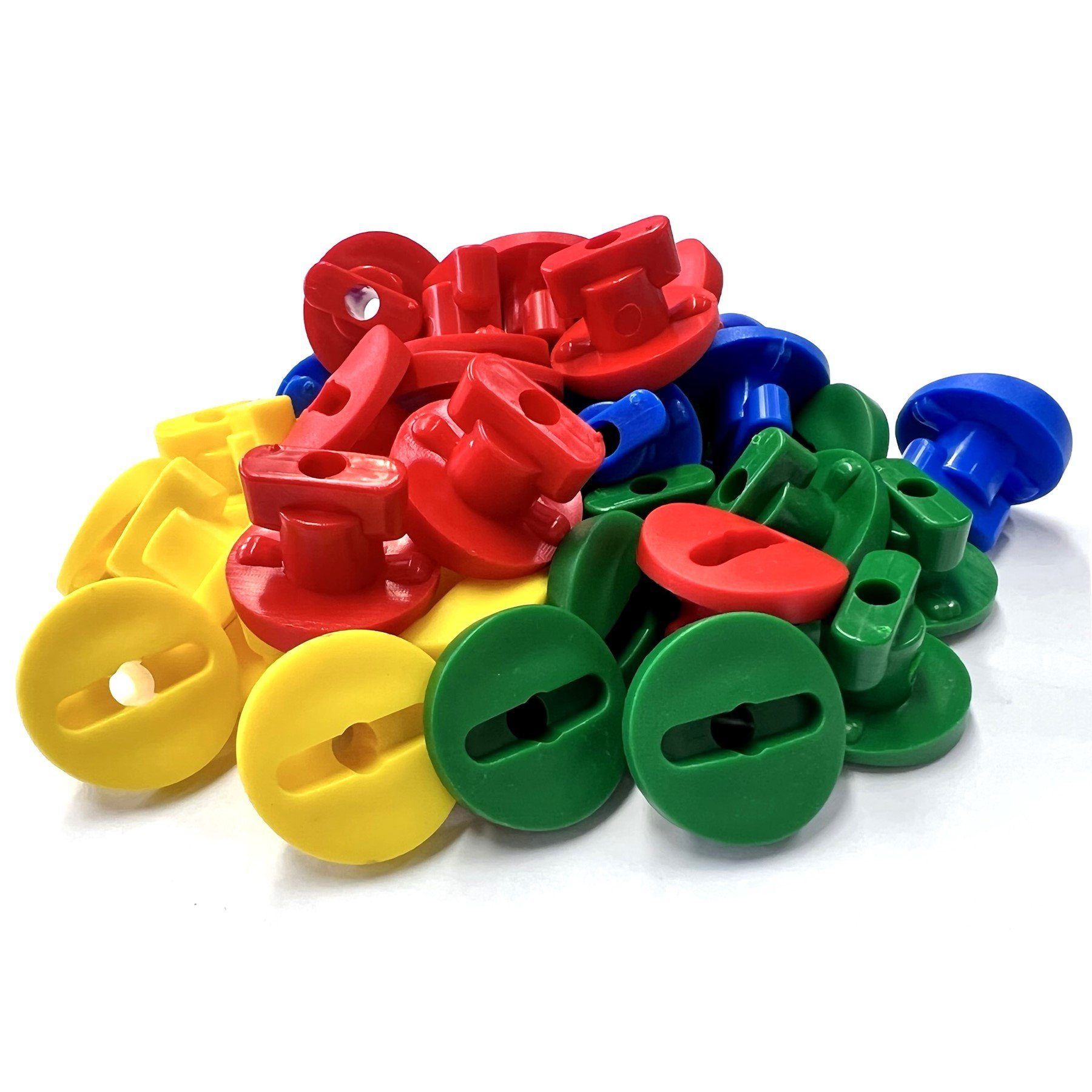Zubehörset bestehend aus Plattenknöpfen sowie Rohrverschlüssen. ODER nur Plattenknöpfe ODER nur Rohrsicherungen ? Sie treffen die Wahl, was Sie für Ihr Move and stic System brauchen !