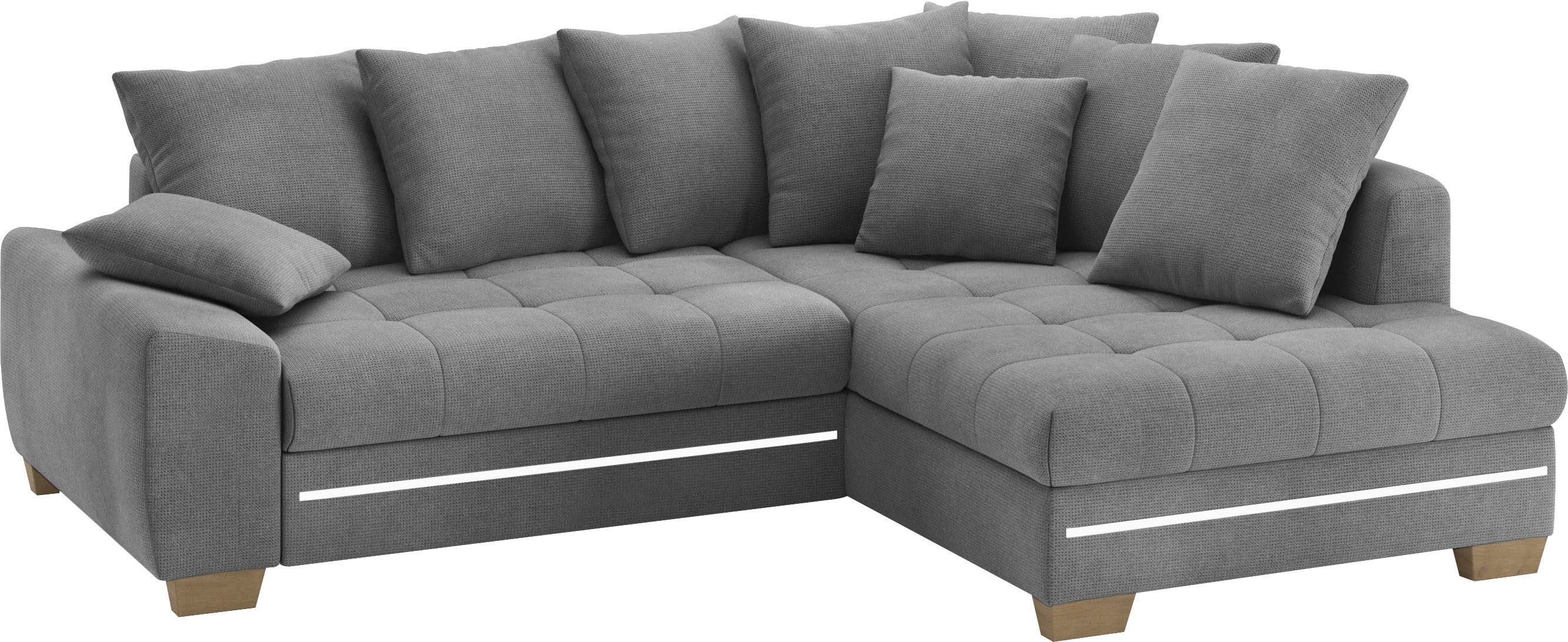 Dieses gemütliche Ecksofa »Nikita II, L-Form« von Mr. Couch sorgt mit der RGB-LED-Lichtleiste für ein optisches Highlight, das den Raum ins rechte Licht rückt. Dabei kannst du je nach Lust und Laune zwischen verschiedenen Farben wählen. Zudem verfügt das Möbelstück über einen Bettkasten, sodass es sowohl als gemütliche Sitzgelegenheit für den Tag als auch als Gästebett genutzt werden kann. Ein weiterer Vorteil ist das passende Rückenkissen, die nicht nur schöne Deko-Element sind, sondern auch für noch mehr Komfort sorgen. Beim Ecksofa befindet sich die Ottomane, von vorne betrachtet, rechts. Die Microfaser ist sehr pflegeleicht und strapazierfähig. Aus Liebe zum Detail wurde dieses Modell von Hand angefertigt.