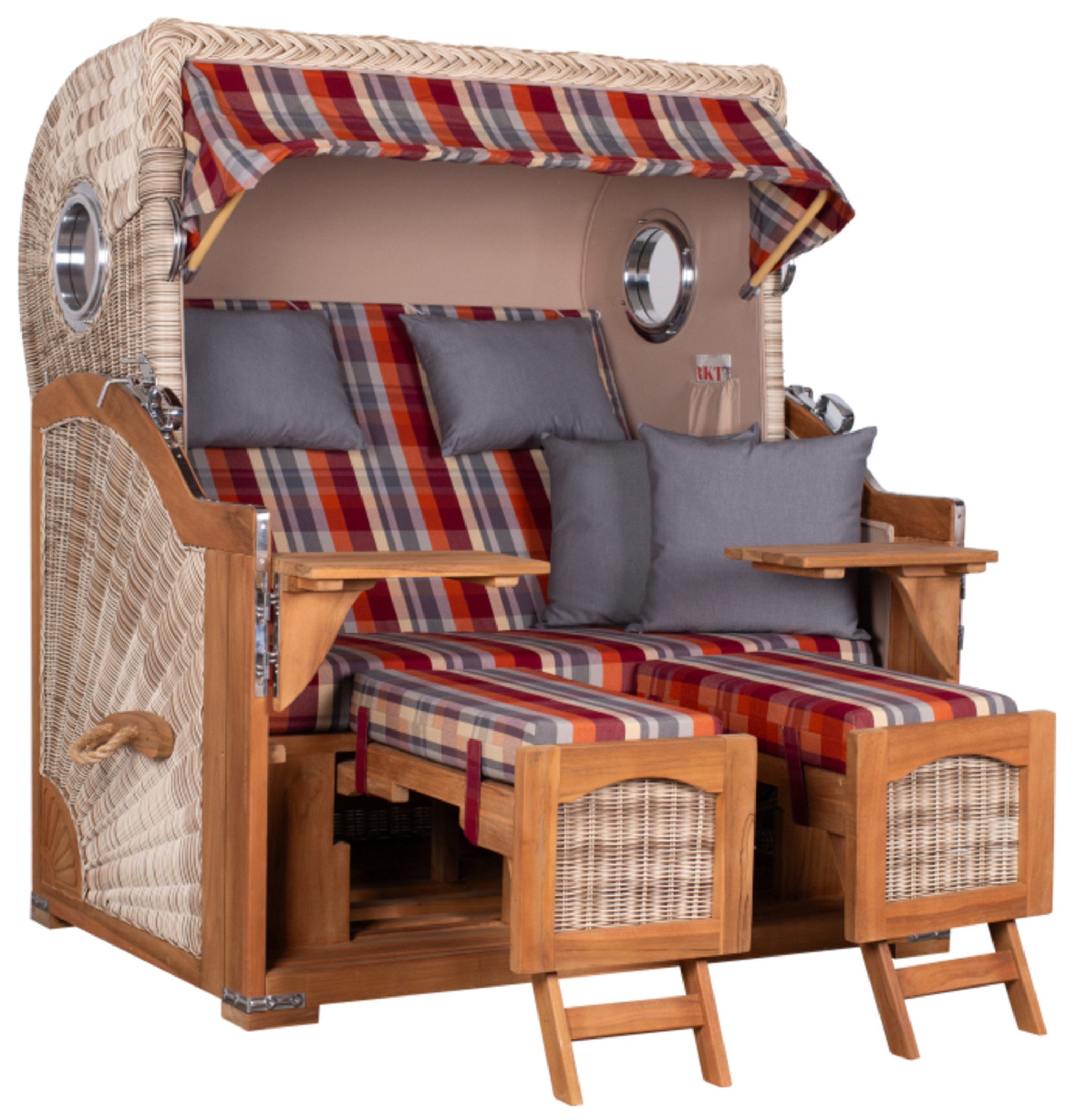 Der Düne Grande ist in einer Vielzahl geschmackvoller Dessins erhältlich – so finden Sie garantiert das passende Modell für Ihren Stil. Besonders praktisch: Der Strandkorb wird komplett montiert bis zur Bordsteinkante geliefert und ist sofort einsatzbereit.