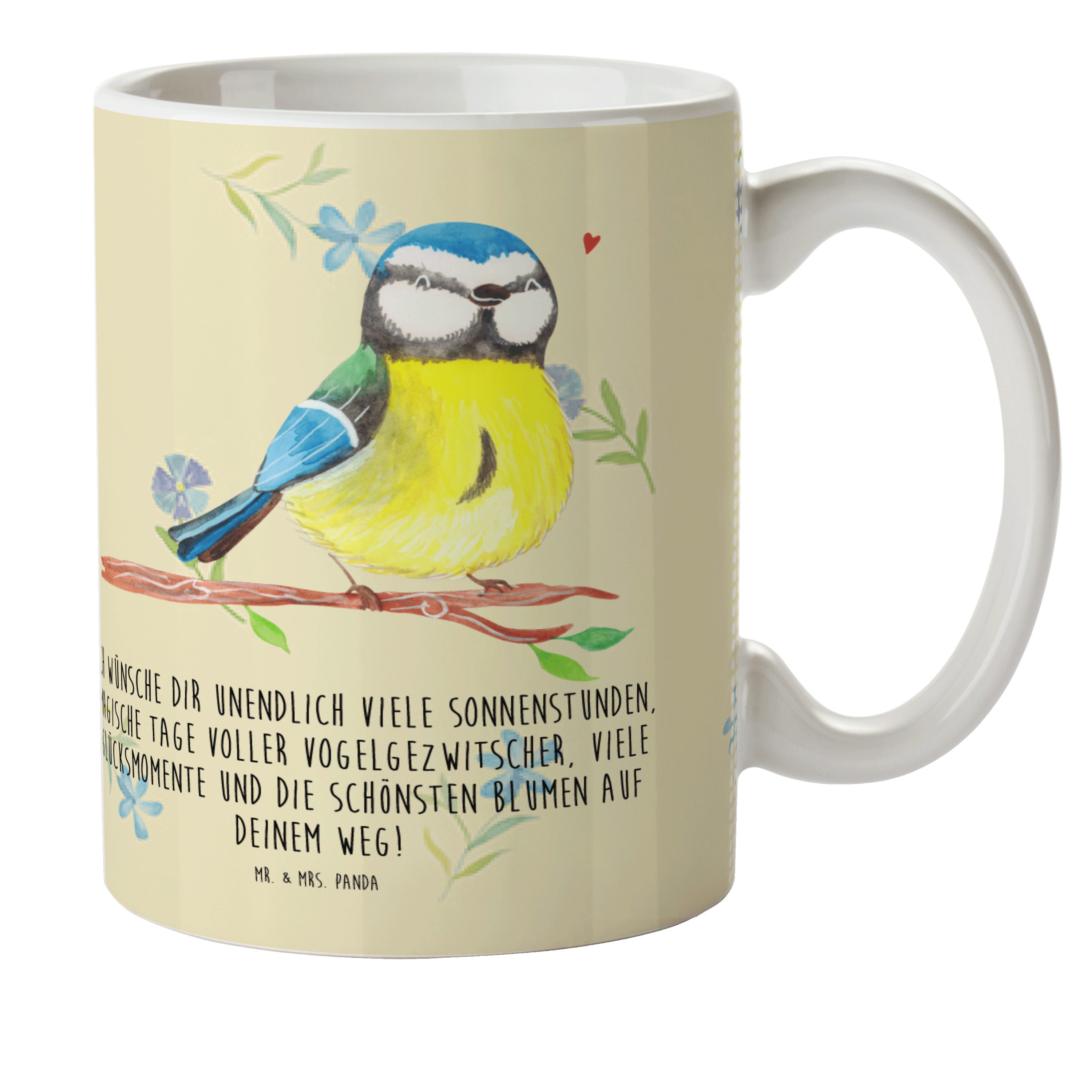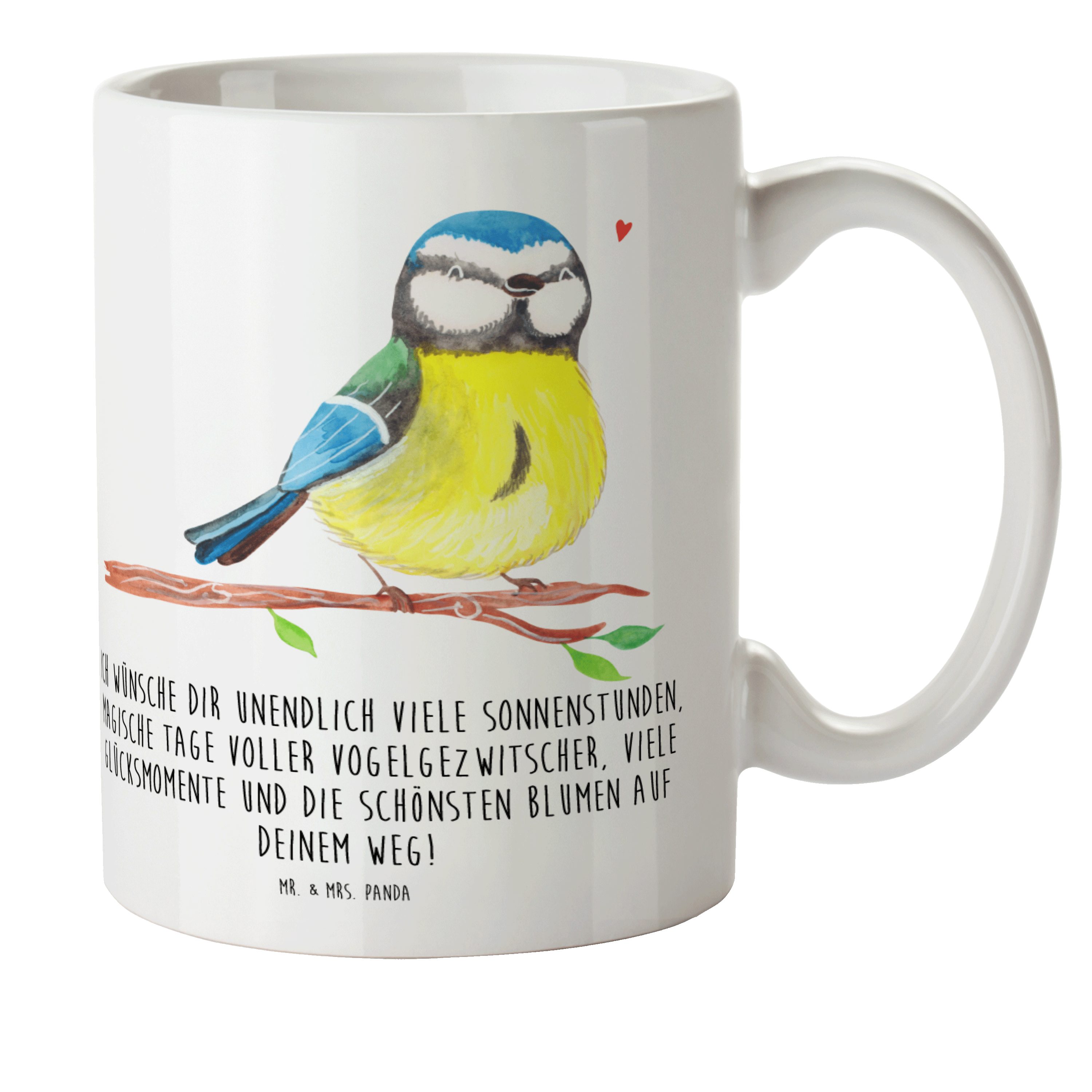 Mr. & Mrs. Panda Kinderbecher Vogel Blaumeise, Kindertasse, Weiß, Kinderbecher, Osterhase, Blaumeis, 1-tlg., Kunststoff