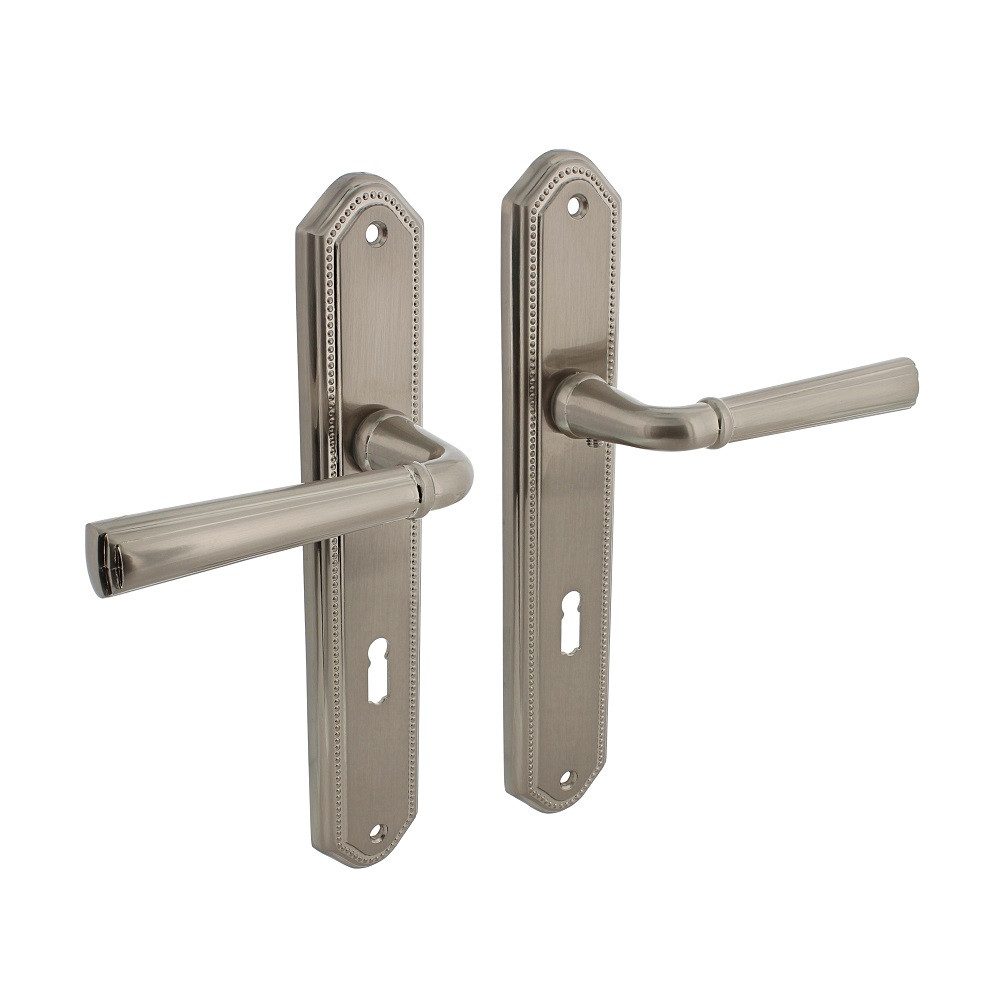 Türdrücker im Landhausstil sind voll im Trend. Deshalb bieten wir Ihnen hier das Modell Hannover in der matt vernickelten Ausführung an. Diese zeitlos schöne Langschildgarnitur aus Zamak gefertigt, überzeugt komplett durch seine Optik und seine hochwertige Verarbeitung. Die Grifflänge von 127mm gewährleistet ein tolles handling und ein angenehmes öffnen der Türe. Wir liefern ihnen selbstverständlich das komplette Montagematerial mit welches Sie zur Befestigung an einer Türe benötigen. Sie haben die Wahl zwischen den 3 Schlossformen Buntbart, Profilzylinder und WC DIN Norm.