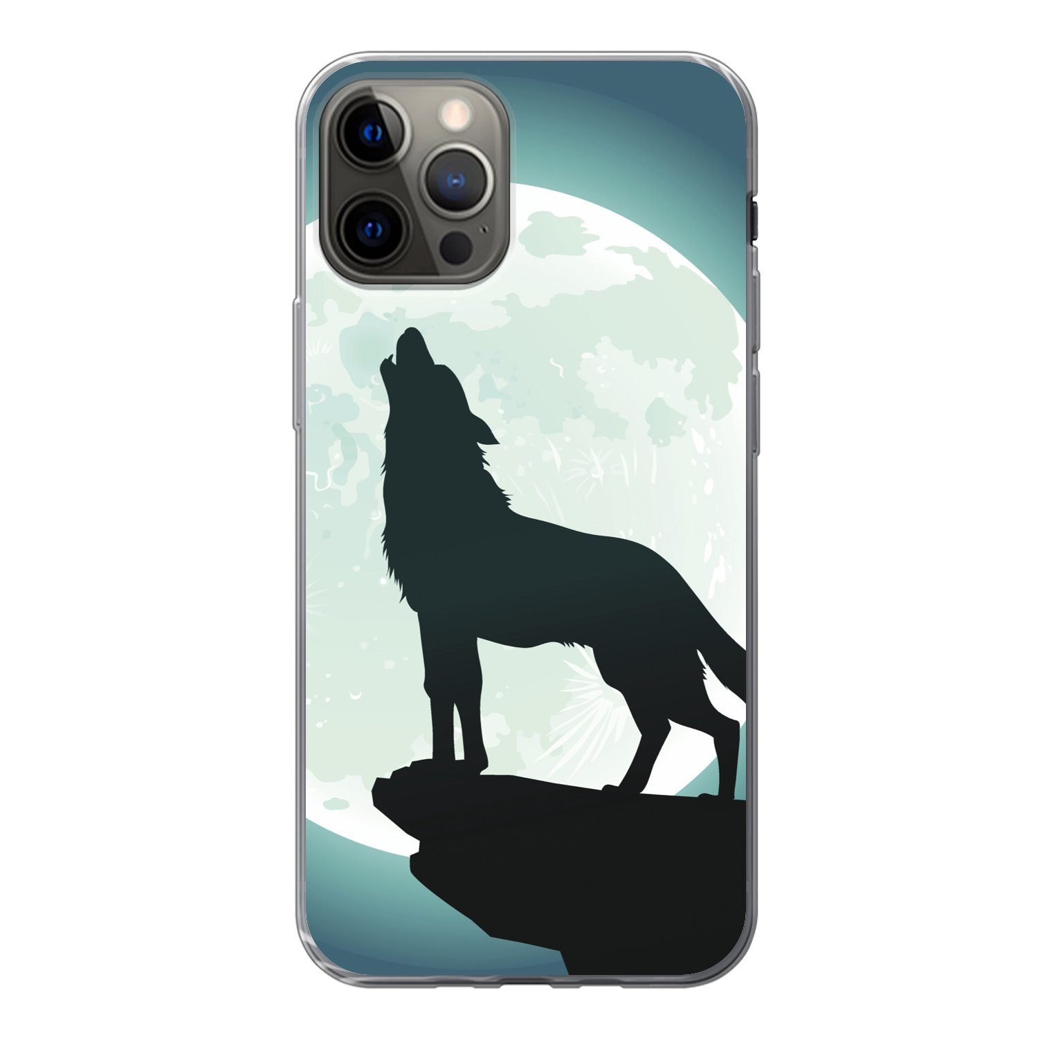 Eine Illustration der Silhouette eines heulenden Wolfs auf einem Felsen. Im Hintergrund ist der Vollmond zu sehen.| Kompatible Geräte | Apple iPhone 13 Pro |