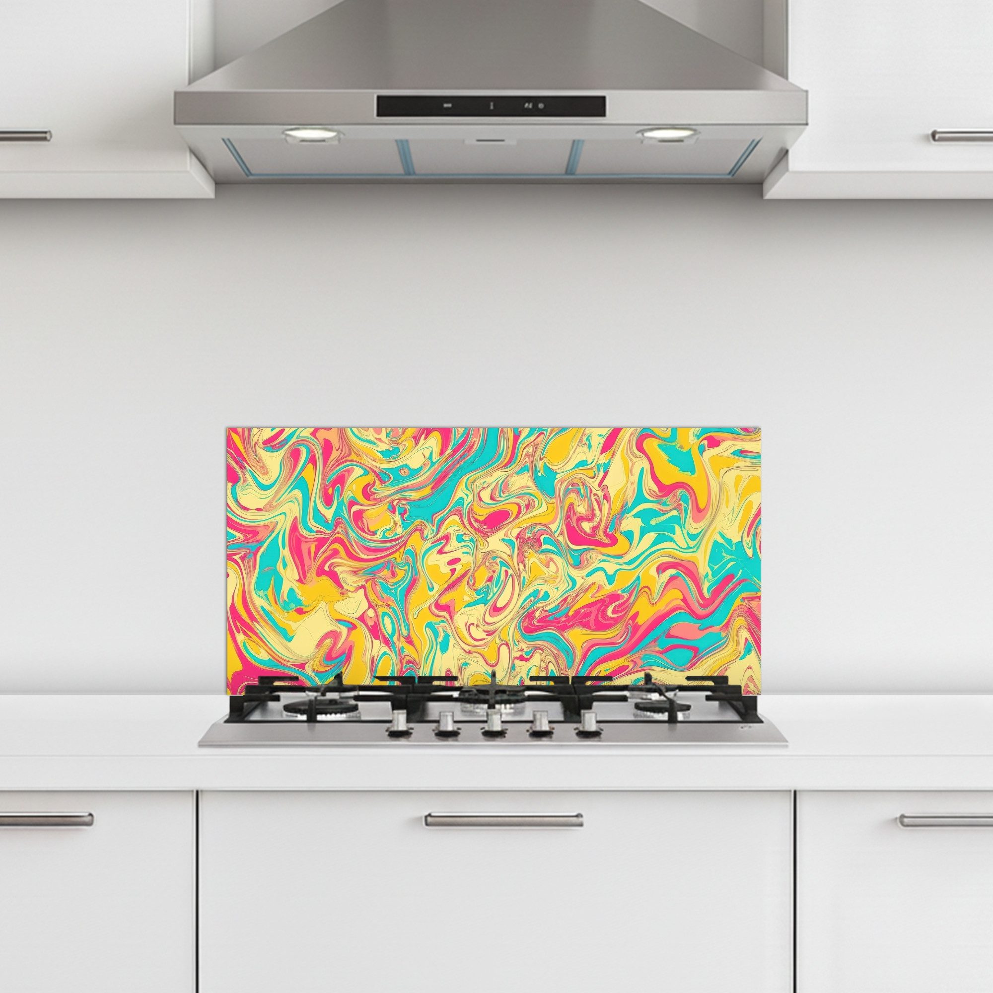 Die Küchenrückwand besteht aus strapazierfähigem, PVC-freiem Material, das hitzebeständig, wasserabweisend und UV-beständig ist. Die Glasoptik sorgt für einen modernen und eleganten Look, ohne die Bruchgefahr von echtem Glas.